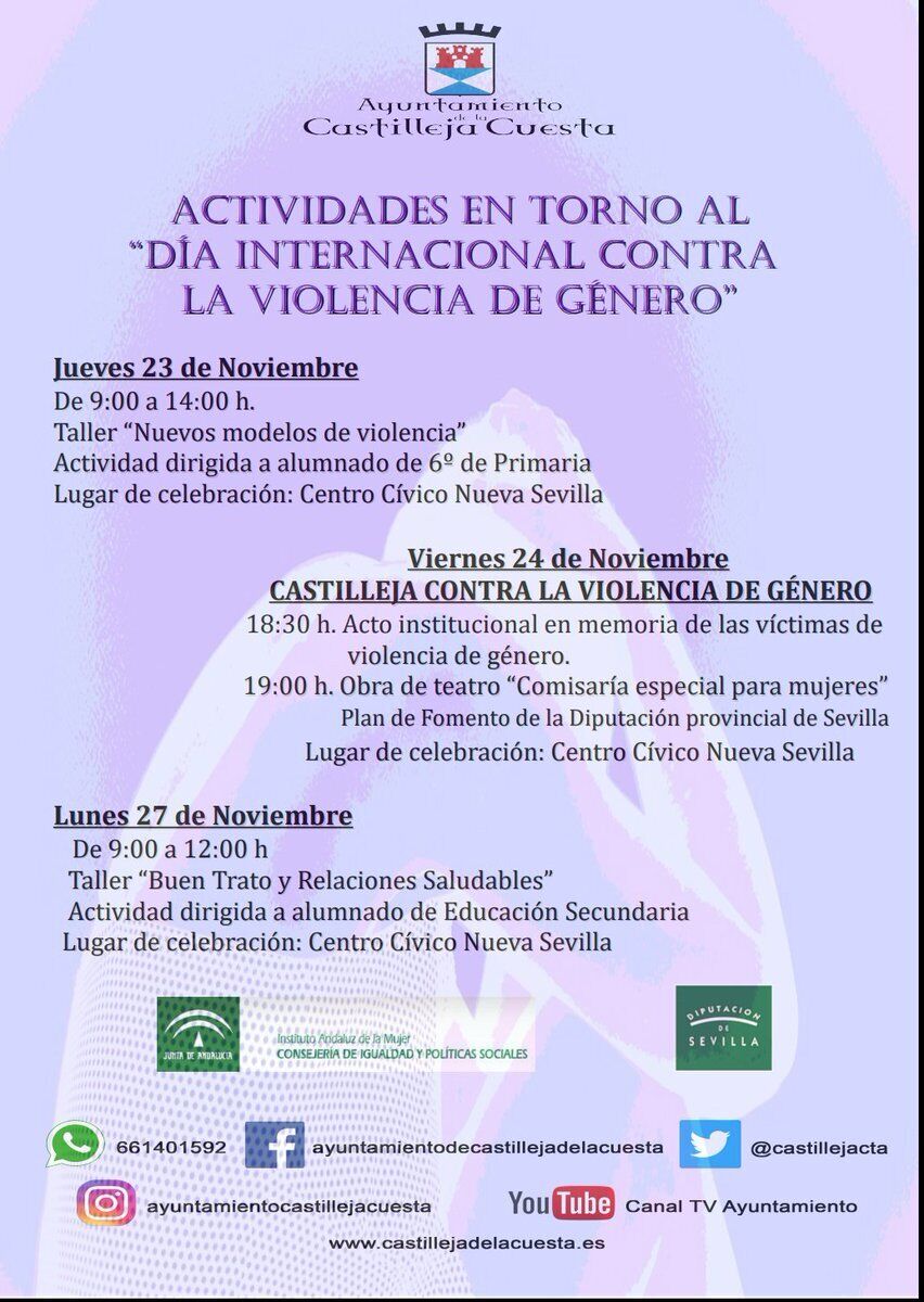 El Ayto de #castillejacta organiza una serie de actividades con motivo del 'Día Internacional contra la violencia de género'. Y el viernes 24 Acto Institucional y Teatro 'Comisaría especial de Mujeres'.