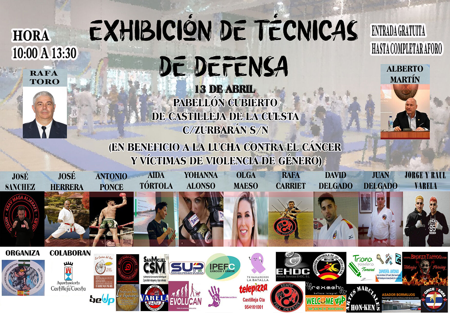 La Asociación Andaluza Preventiva del Suicidio Policial organiza esta exhibición de diferentes técnicas de defensa y artes marciales, cuyos beneficios irán destinados a la lucha contra el cáncer y a las víctimas de Violencia de Género.