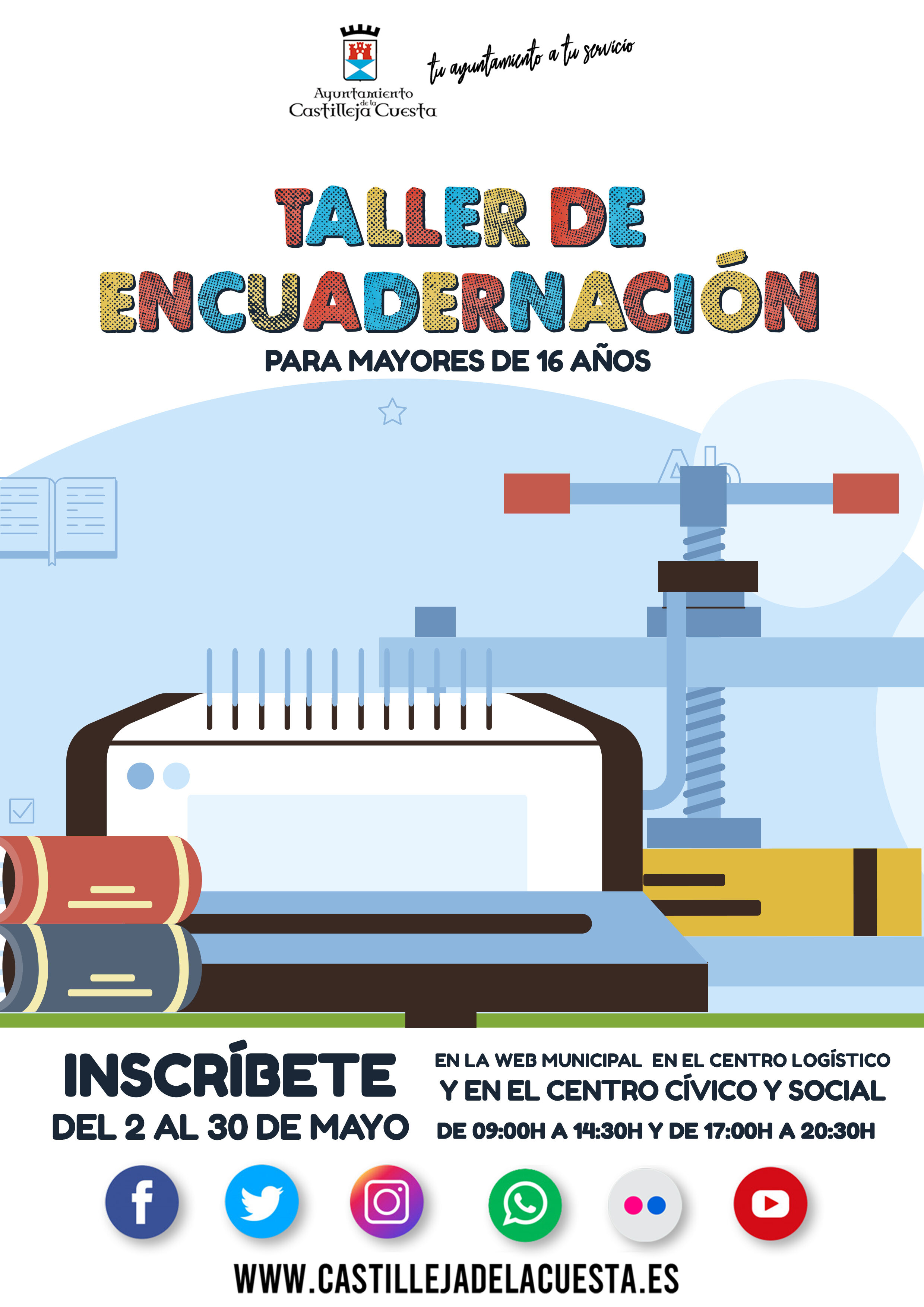 Inscripciones on line: descarga la solicitud rellenable y envíala al correo cultura@castillejadelacuesta.es con el asunto TALLER ENCUADERNACIÓN.