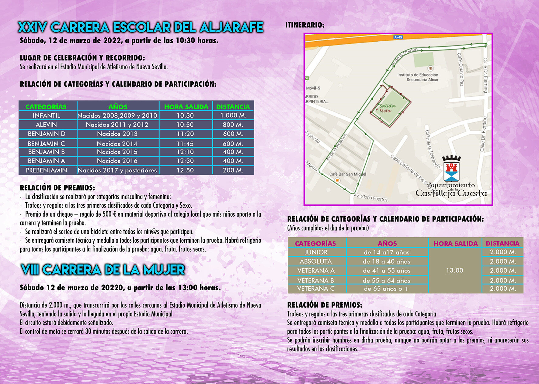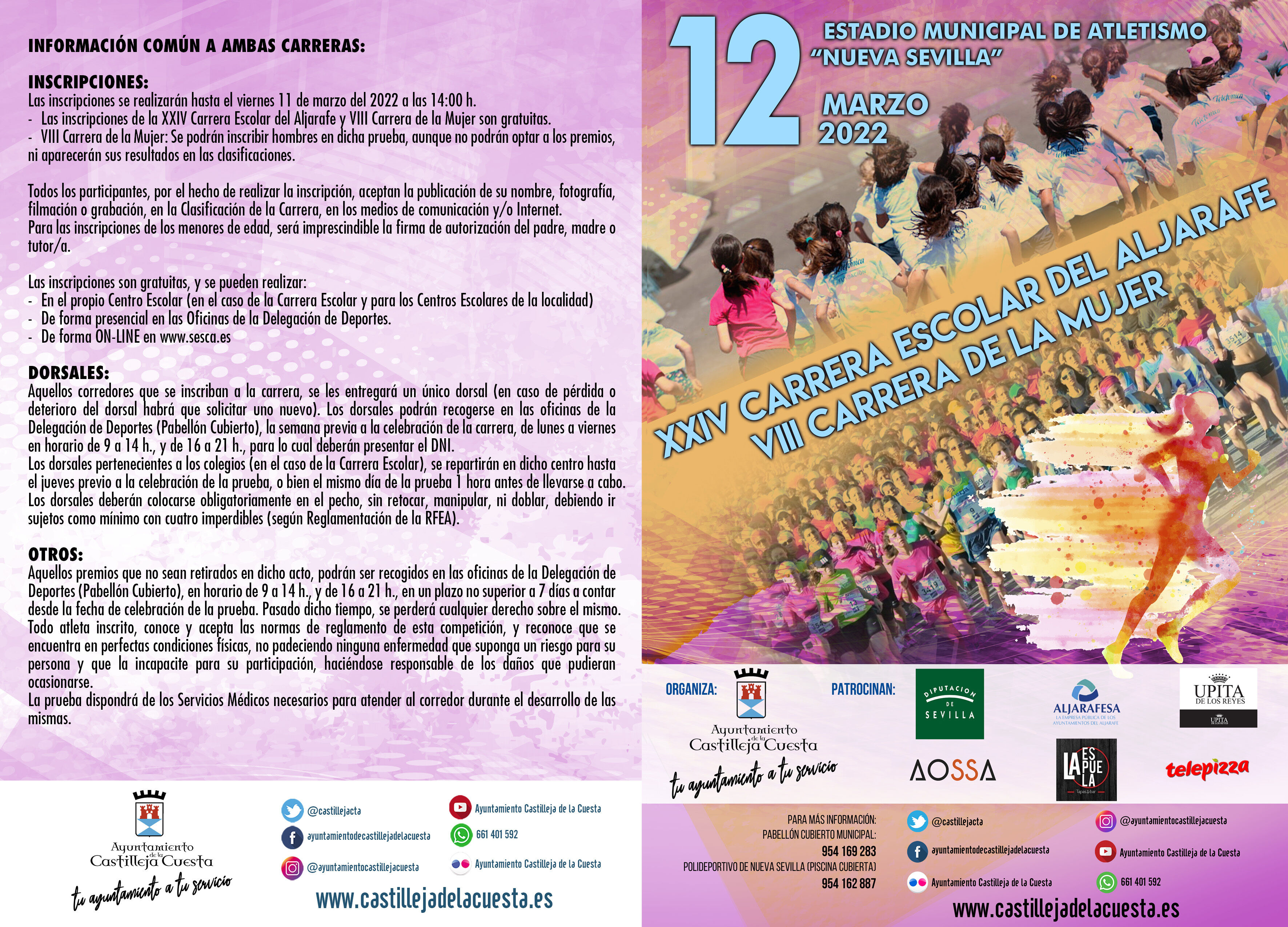 CARRERA DE LA MUJER https://crono.sesca.es/carrera-2/?idCarrera=450&nombre=viii-carrera-de-la-mujerCARRERA ESCOLAR https://crono.sesca.es/carrera-inscripcion/?idCarrera=449