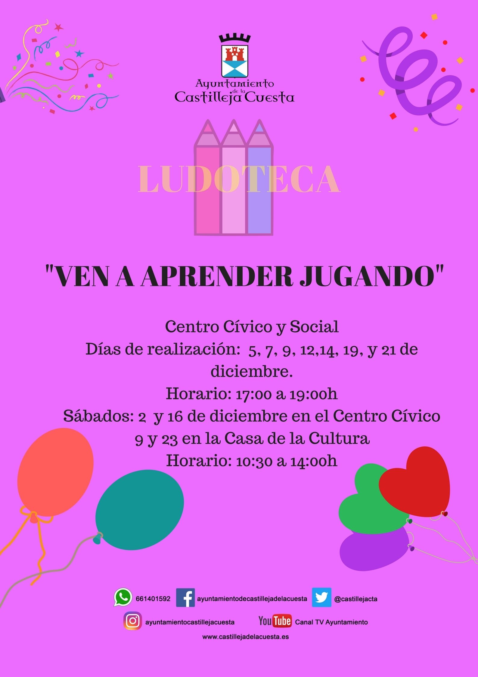 Los días 5, 7, 9, 12, 14, 16, 19 y 21 de diciembre en Centro Cívico y Social,