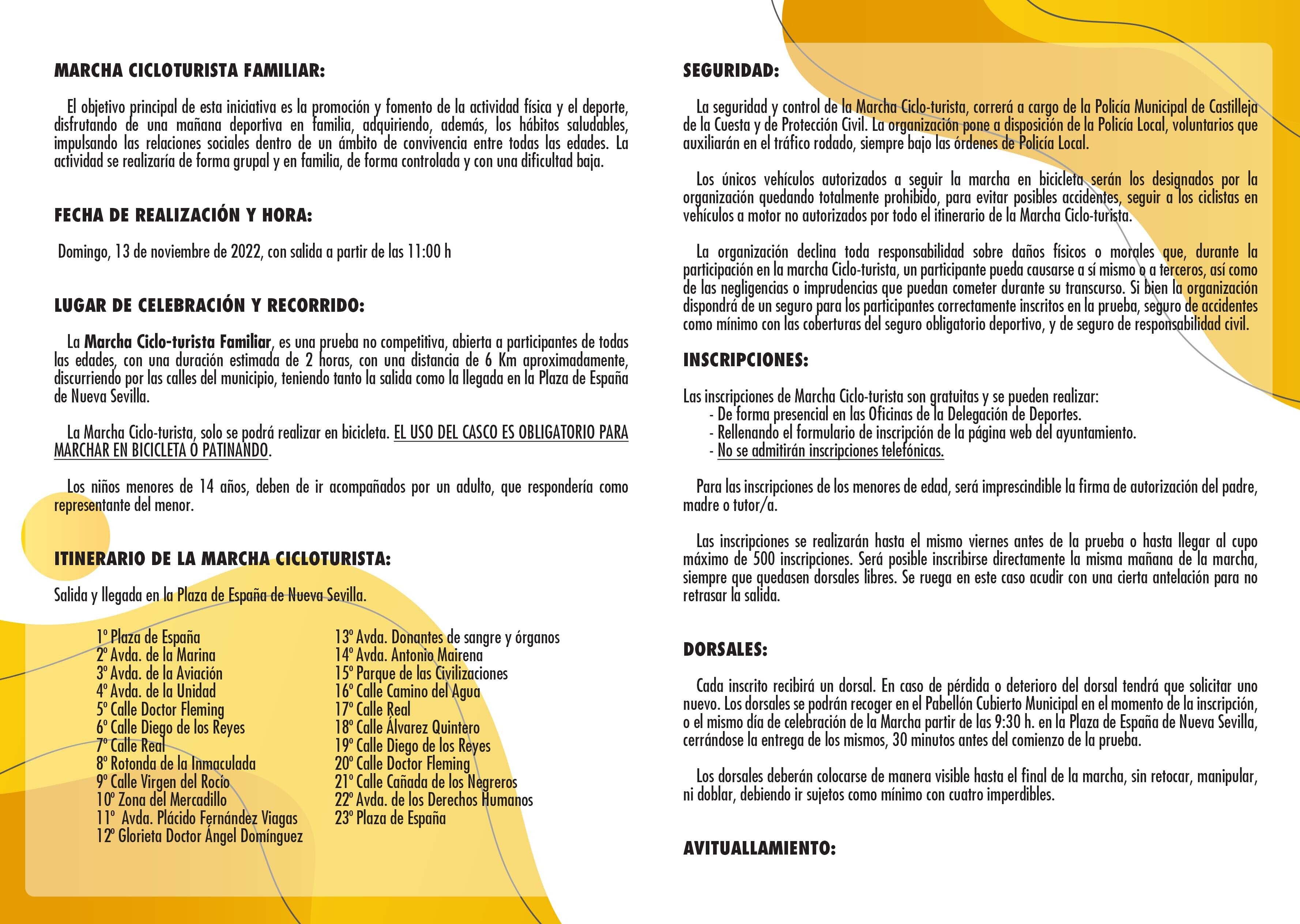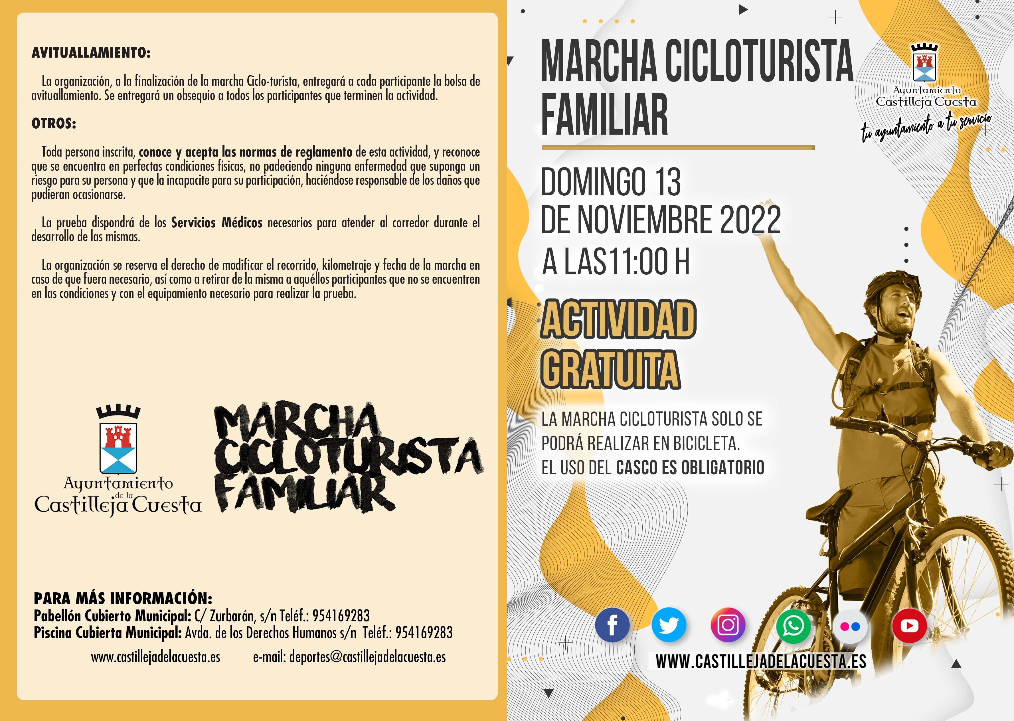 INSCRIPCIONES EN LA SECCIÓN DE DEPORTES: https://castillejadelacuesta.es/es/deportes/marcha-cicloturista-familiar-/