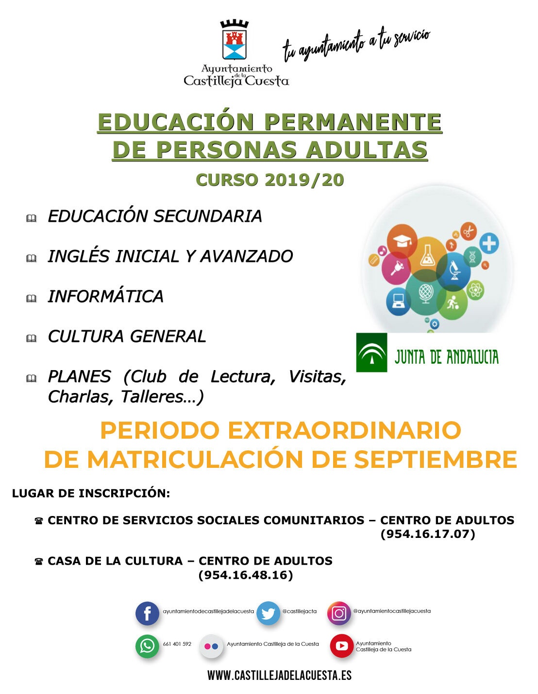 El Centro de Educación Permanente de Personas Adultas abre el periodo extraordinario de matriculación, este mes de septiembre, de cara al próximo curso escolar 2019/2020. Si estás interesado/a, puedes formalizar ya tu solicitud.