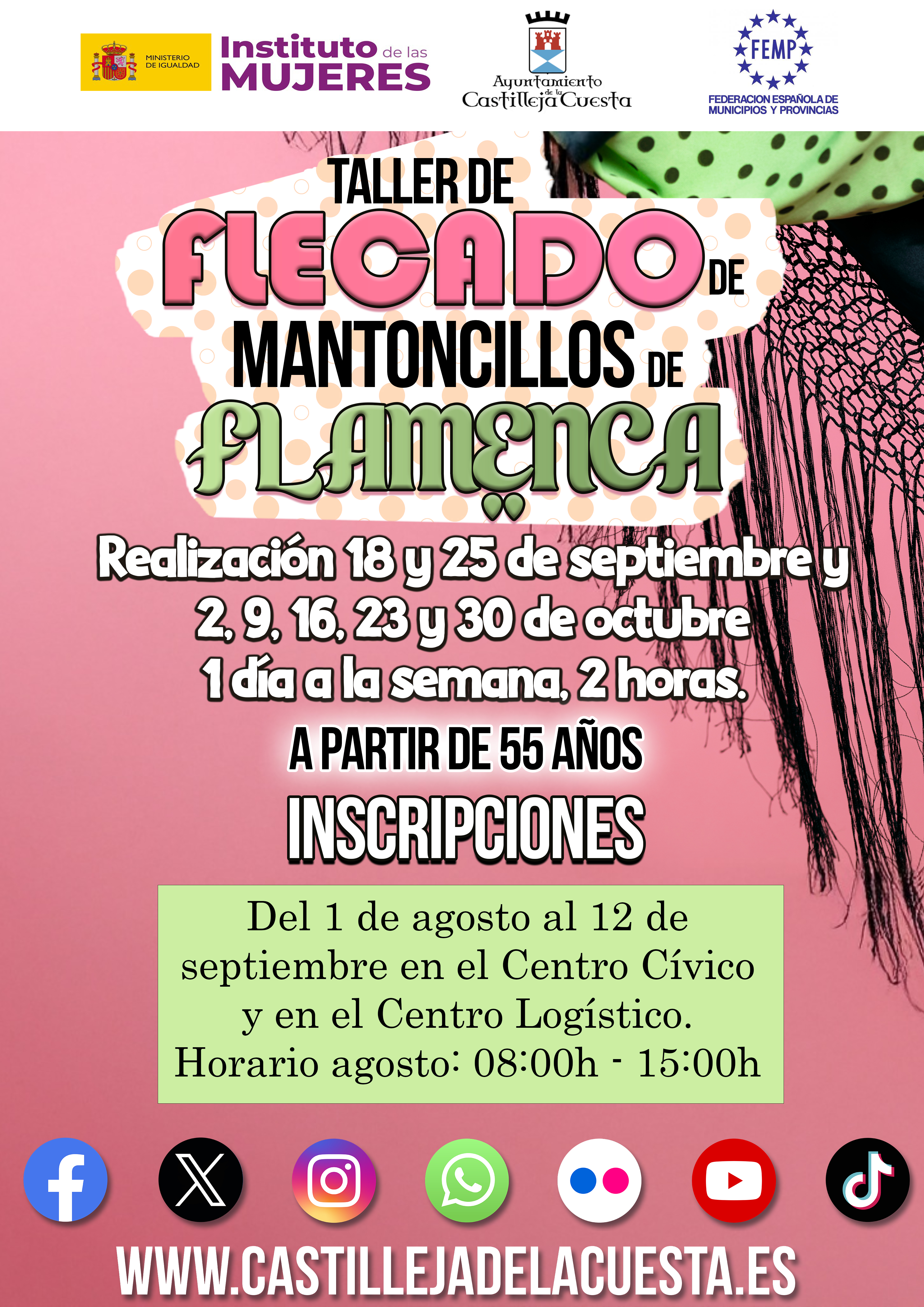 Las inscripciones estarán abiertas hasta el 12 de septiembre en el Centro Cívico y en el Centro Logístico de 8.30 a 14.30 horas o de manera on line, rellenando la solicitud y enviándola al correo bienestarsocial@castillejadelacuesta.es