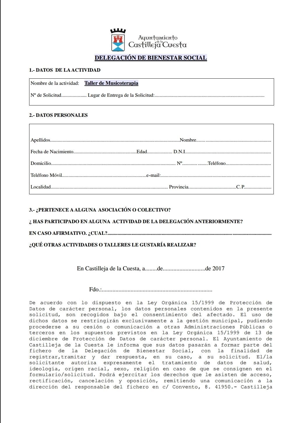 Lugar: Inscripciones en Casa de la Cultura y Delegación de Bienestar Social