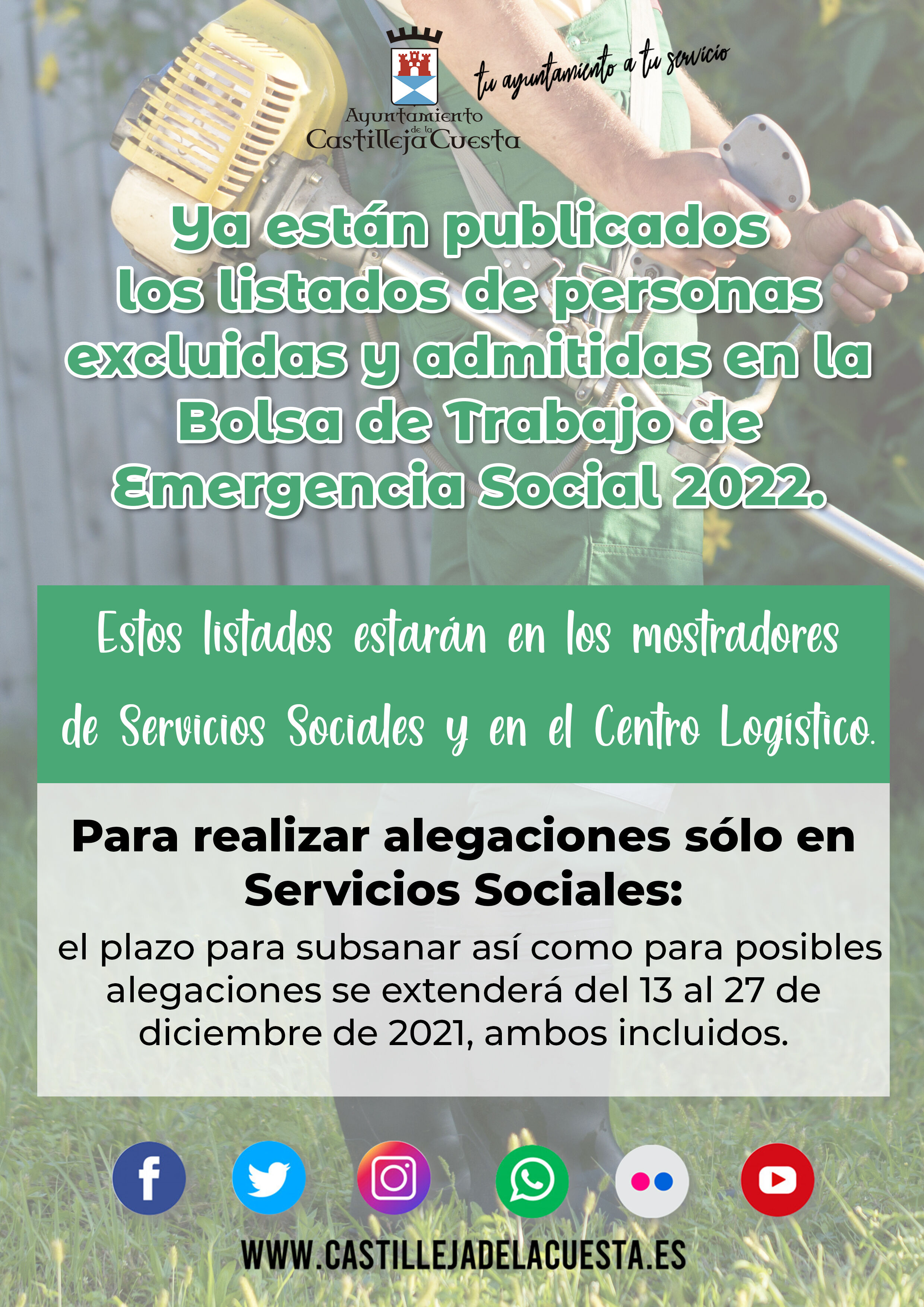 Ya están publicados los listados de personas excluidas y admitidas en la Bolsa de Trabajo de Emergencia Social 2022.
