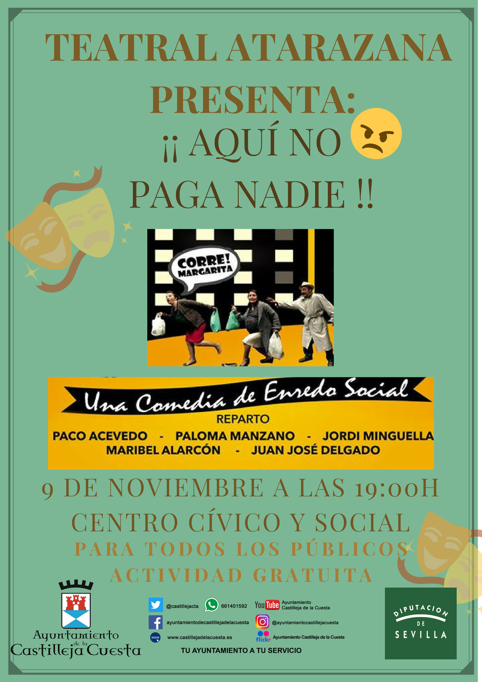 - Viernes: Teatro 'Aquí no paga nadie'. 19.00 horas. Centro Cívico y Social.