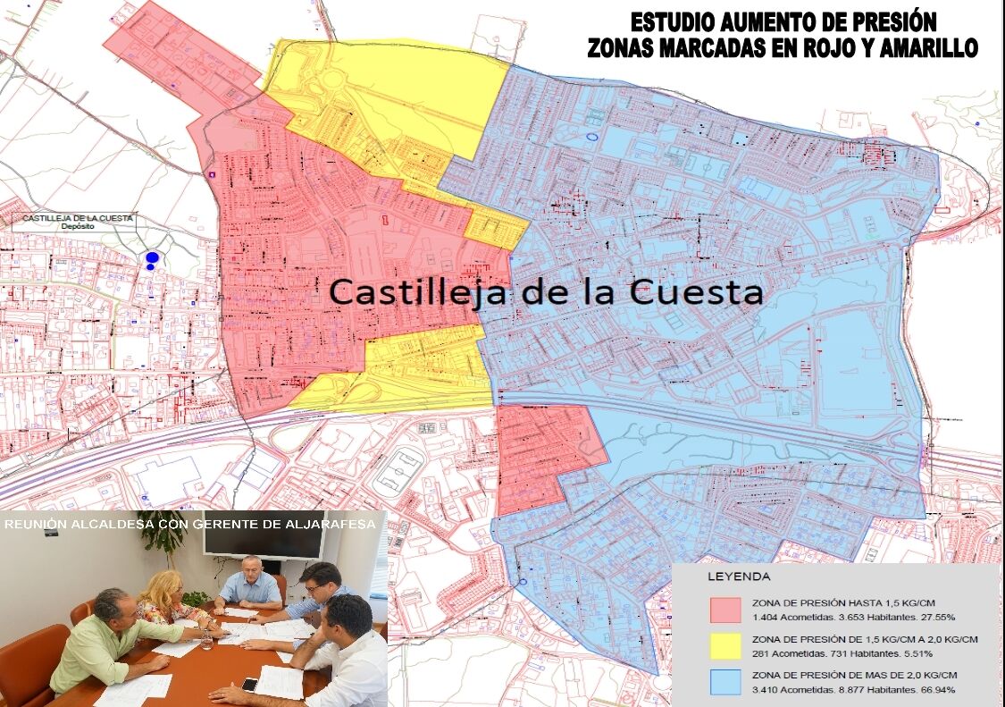 Este estudio, que debe estar listo antes del verano, es el paso decisivo para, a continuación, iniciar el proyecto de obras que solvente el problema de presión de agua que viven más de 4.000 vecinos y vecinas de Castilleja de la Cuesta.