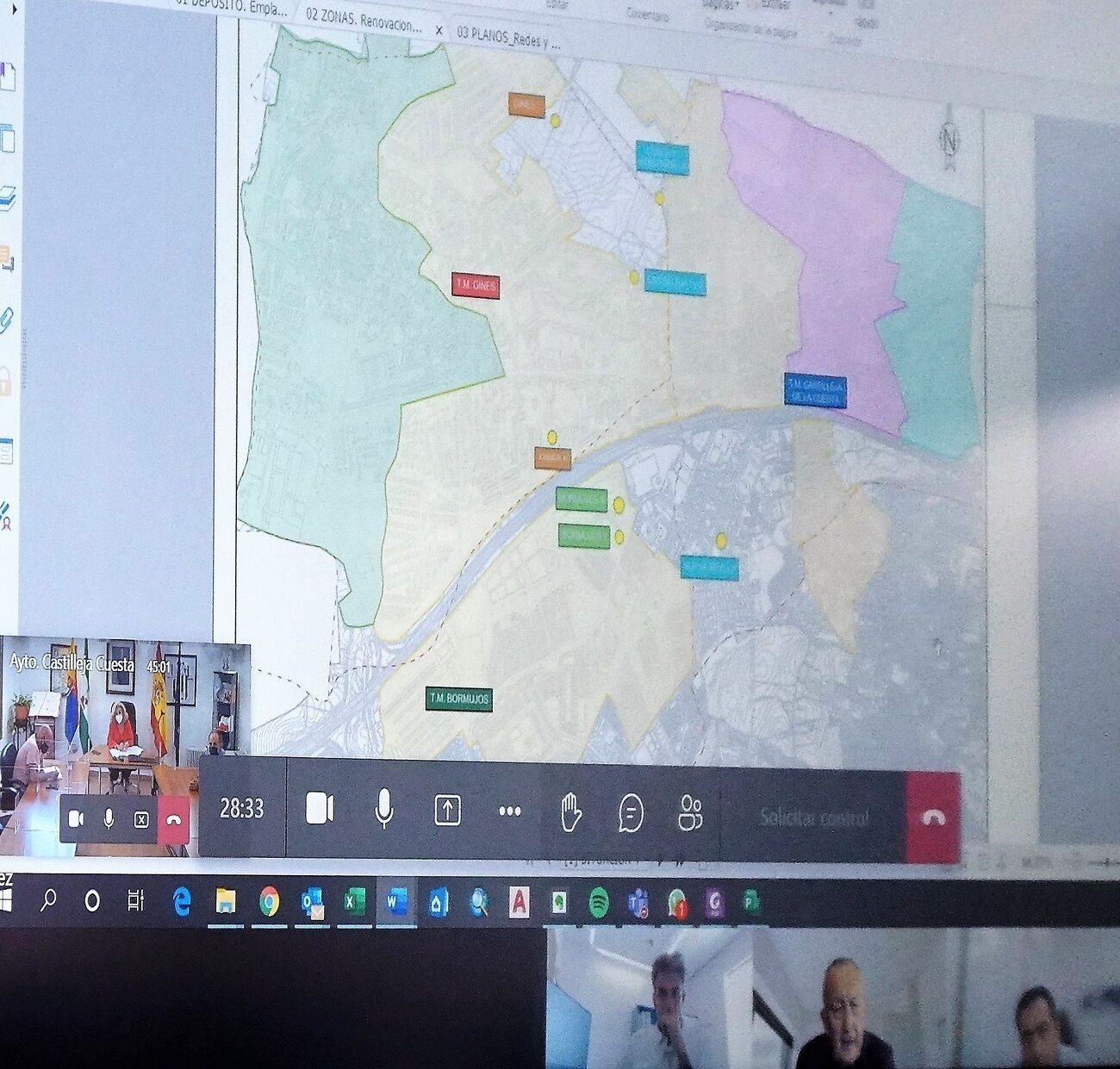 La alcaldesa, Carmen Herrera, ha mantenido una reunión on line con el gerente de Aljarafesa, Pedro Rodríguez, para conocer cómo va a desarrollarse la primera fase de uno de los proyectos de mayor envergadura de la entidad, el del aumento de la garantía y de la presión del agua en el municipio. Aljarafesa ya ha adjudicado las obras de esta primera fase del plan de actuaciones, que comenzarán en julio.