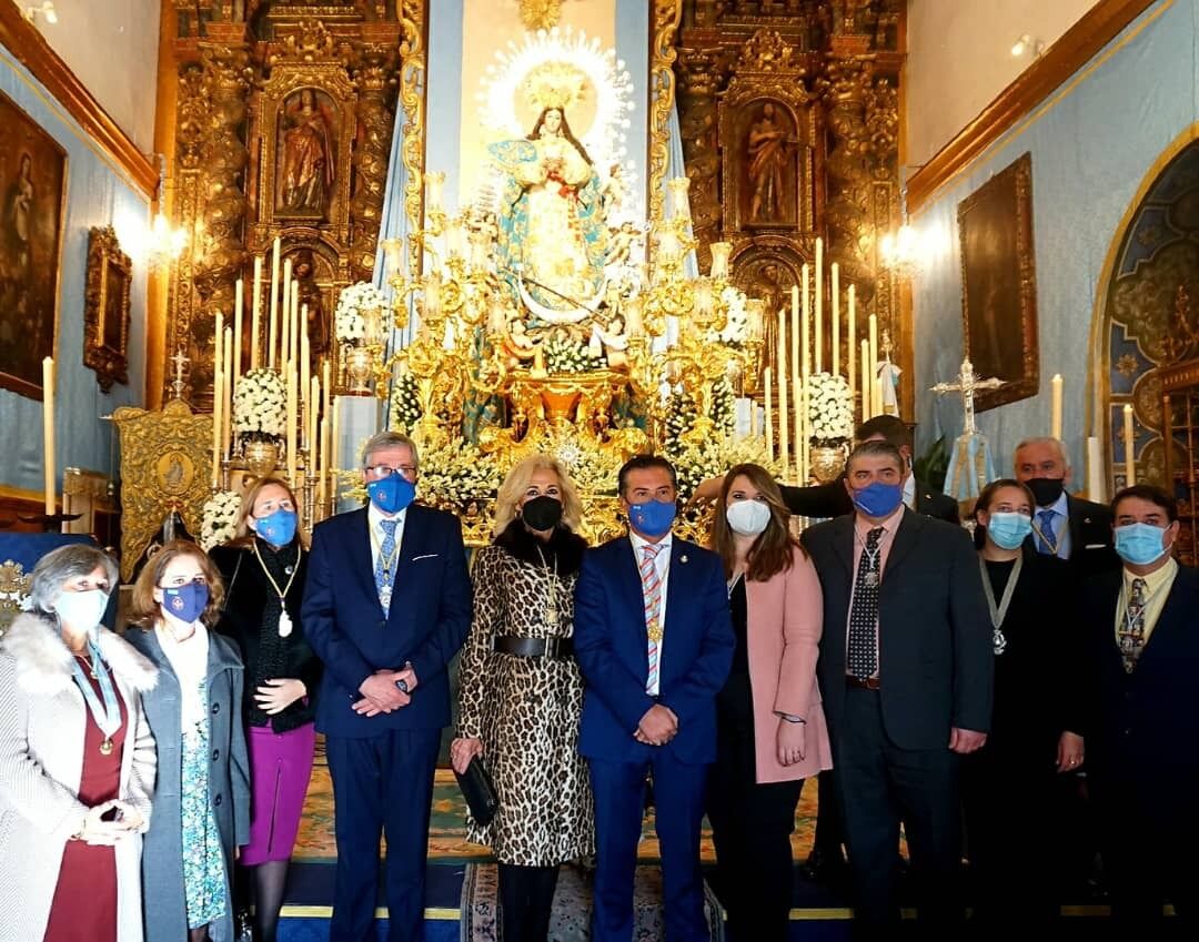 La alcaldesa, Carmen Herrera, y miembros de de la Corporación Municipal aistieron, también ayer, junto al hermano mayor, Esteban Rosales, a la Solemne Función que la Hermandad de la Inmaculada Concepción consagra en honor de Nuestra Señora de la Inmaculada Concepción Coronada, presidida por el párroco José María Losada.