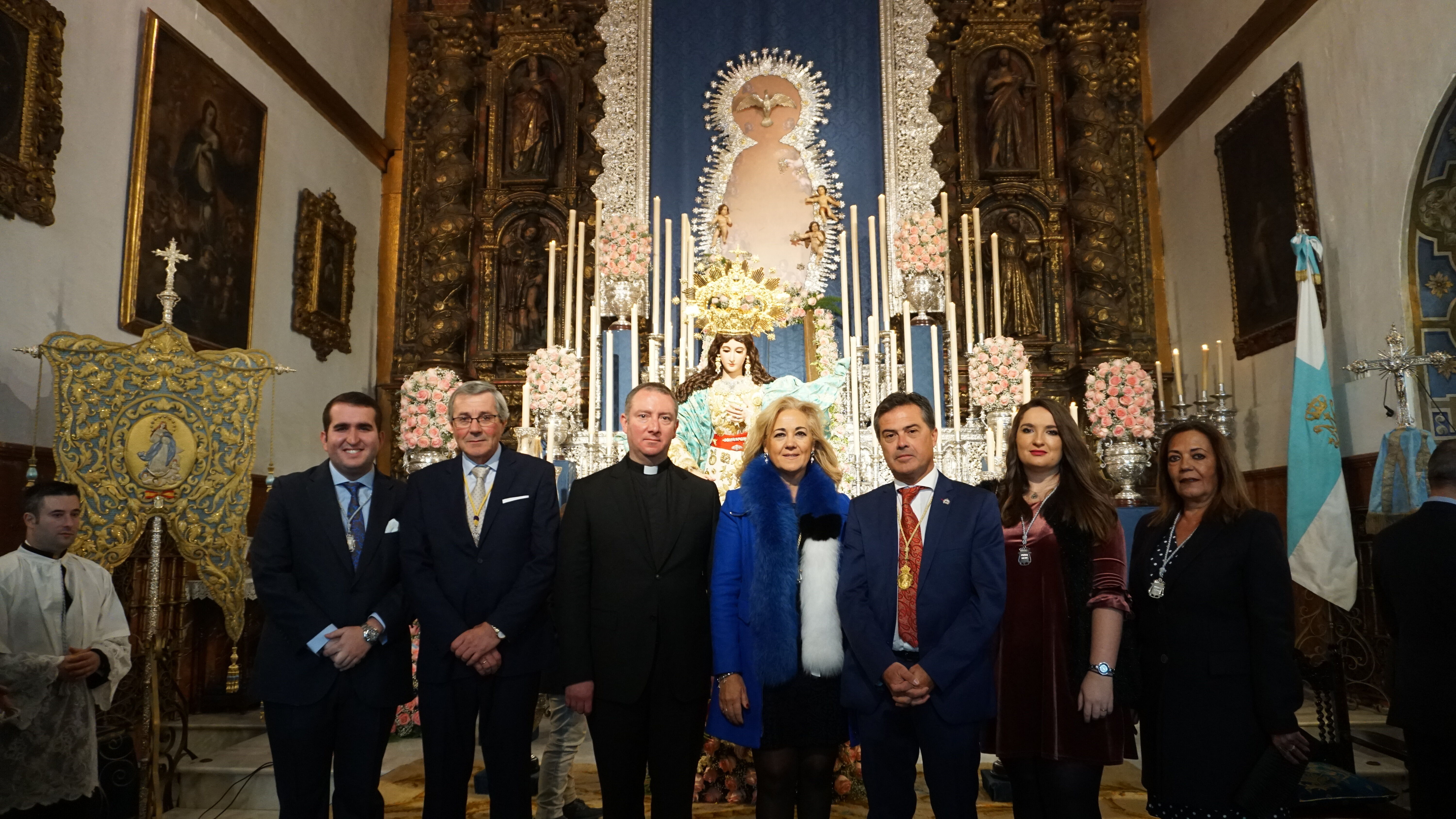 La alcaldesa, Carmen Herrera, y miembros del equipo de Gobierno han asistido hoy, junto al hermano mayor, Esteban Rosales, a la Solemne Función que la Hermandad de la Calle Real consagra en honor de Nuestra Señora de la Inmaculada Concepción Coronada, presidida por el párroco José María Losada.