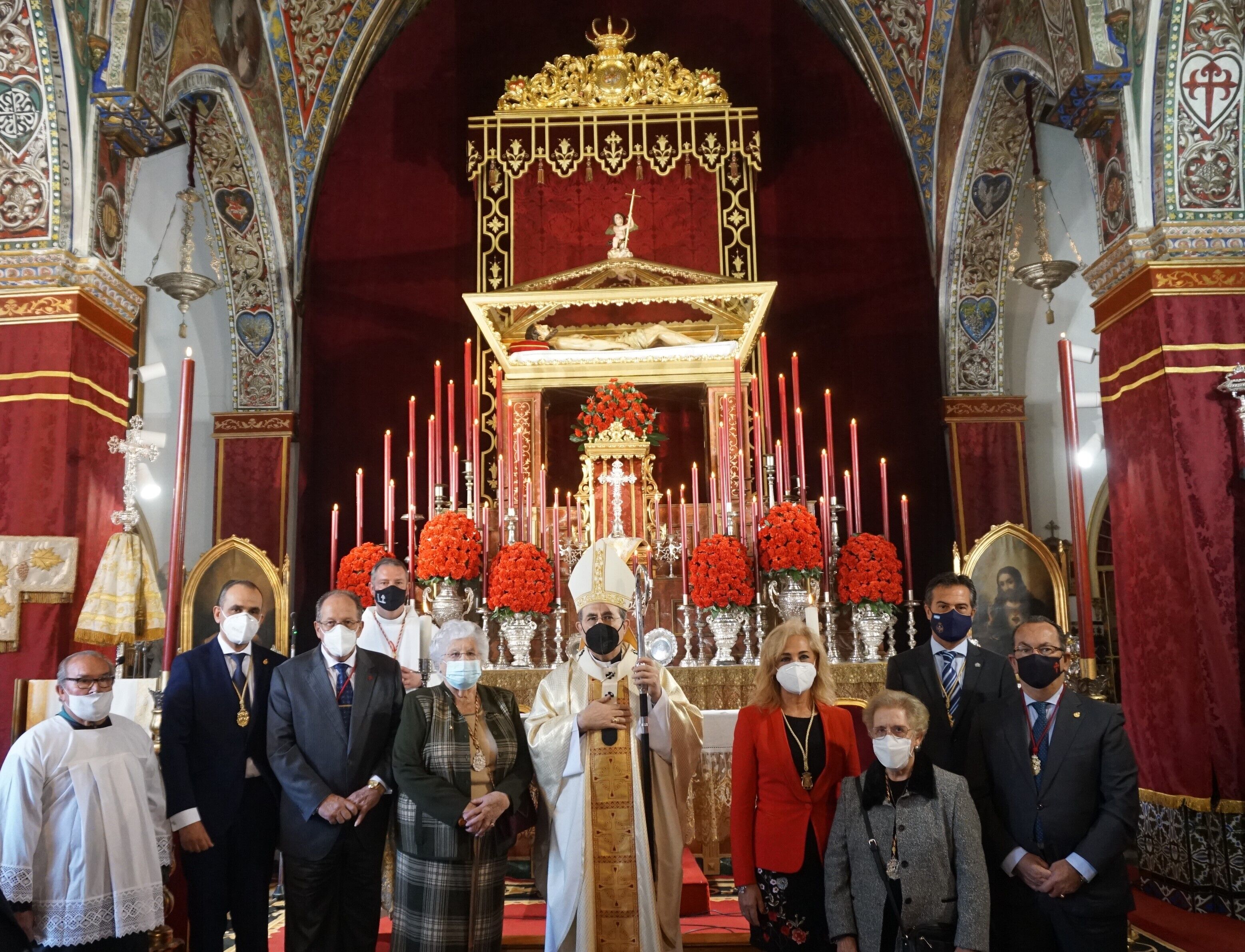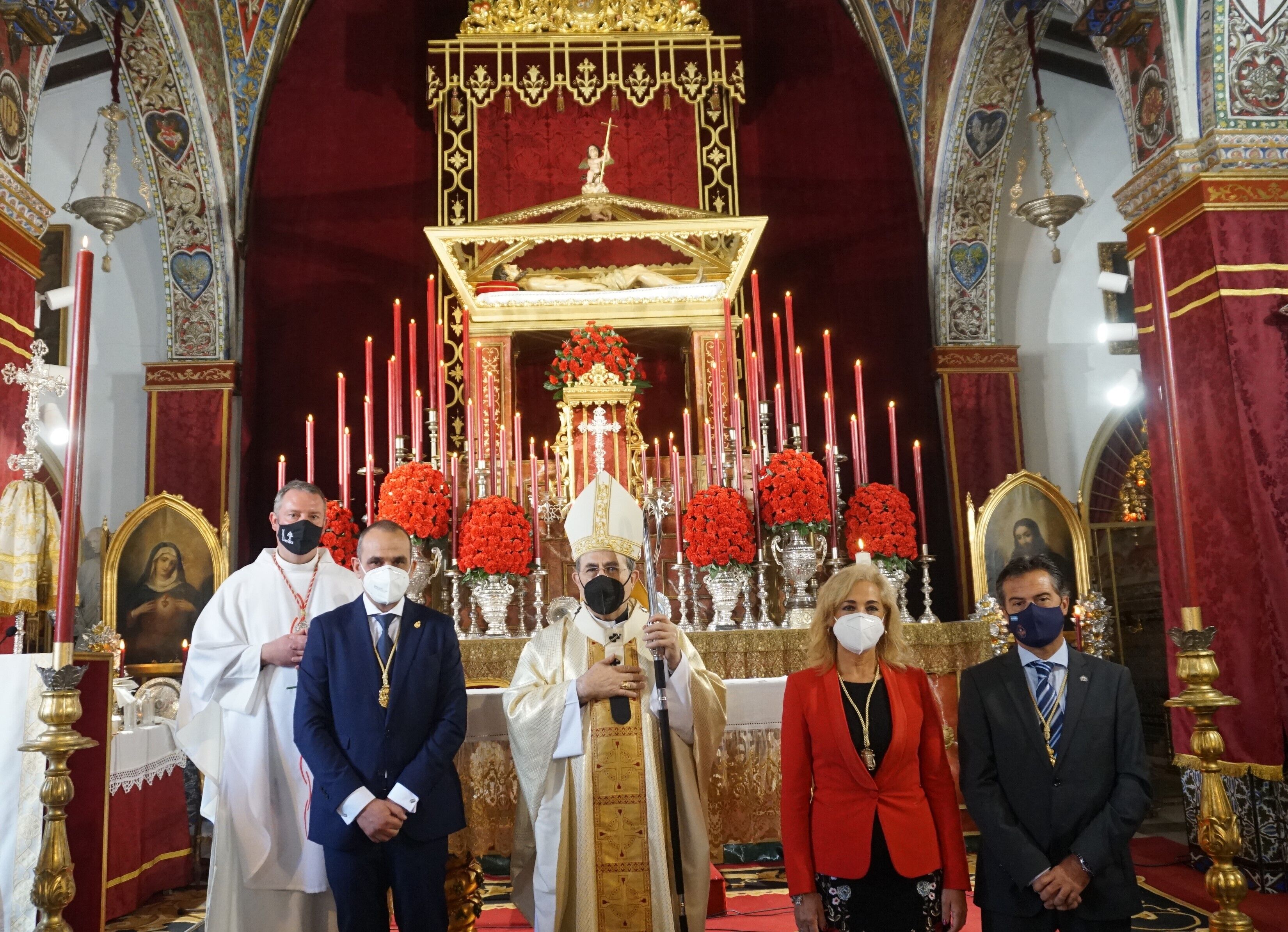 La alcaldesa, Carmen Herrera, ha asistido, junto al hermano mayor de la Hermandad de Santiago Apóstol, Francisco Luque, y al hermano mayor de la Hermandad de la Inmaculada Concepción, Esteban Rosales, al Solemne Triduo al Santísimo Cristo de Los Remedios, presidido por el arzobispo de Sevilla, Juan José Asenjo, y asistido por el párroco José María Losada.