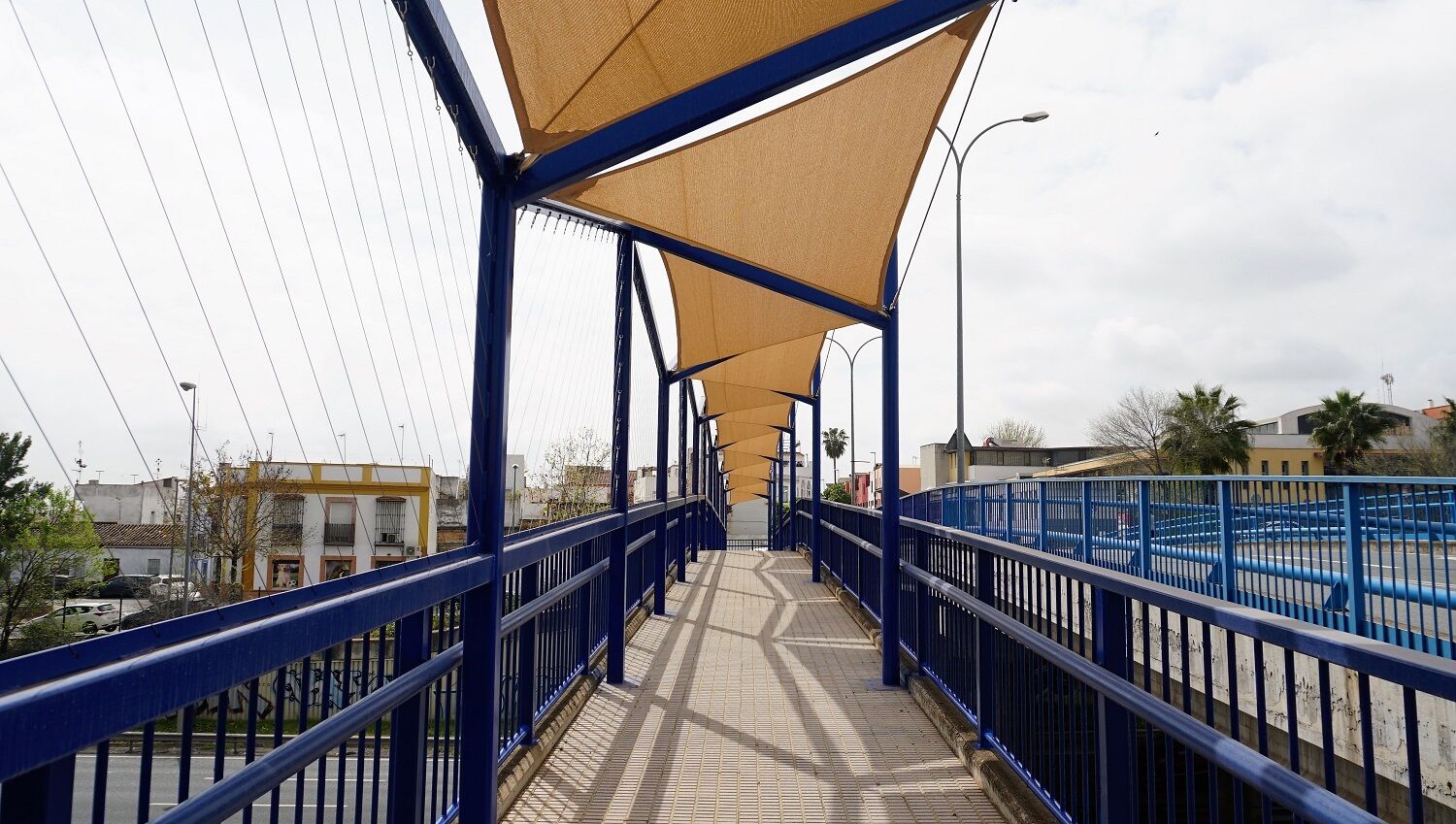 Una importante actuación que supone la instalación de una estructura ligera para cubrir la pasarela peatonal sobre la A-49 y evitar así las inclemencias meteorológicas, especialmente las que experimentan aquellas personas que a diario transitan hacia el Centro de Salud y, también, aquellos jóvenes que cursan sus estudios en el IES Alixar.