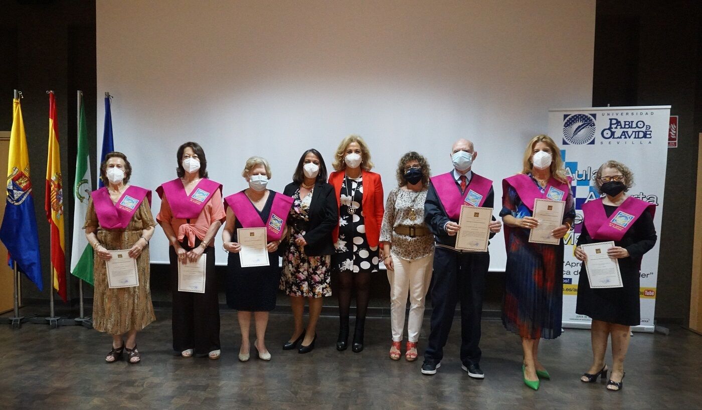 A este acto asistieron la alcaldesa, Carmen Herrera, y la directora académica del Aula Abierta de Mayores de la UPO, María del Rocío Cruz Díaz.