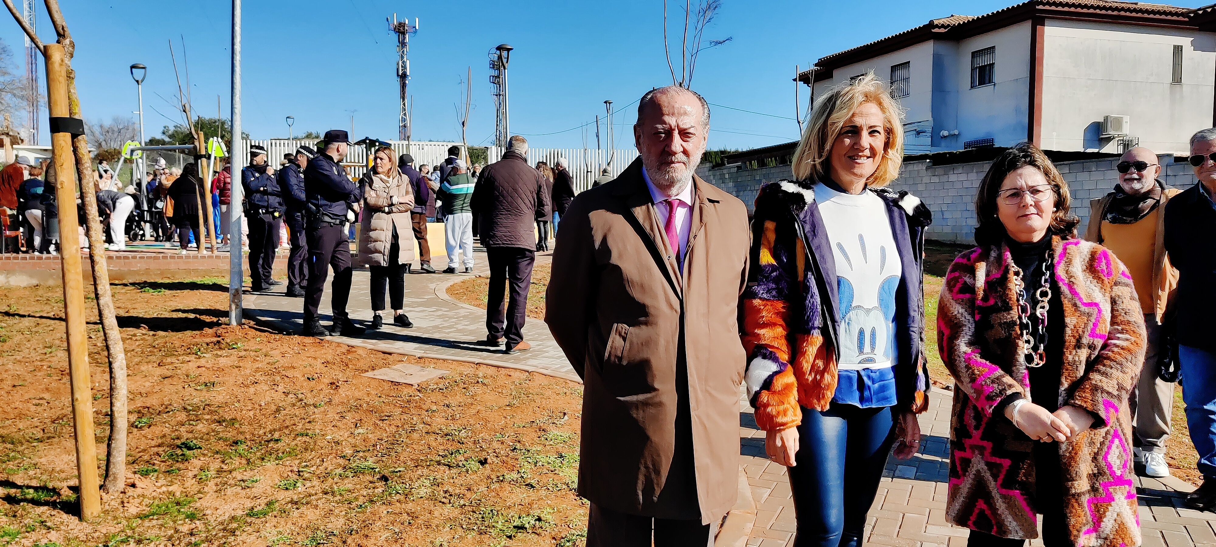 La alcaldesa, Carmen Herrera, y el presidente de la Diputación, Fernando Rodríguez Villalobos, inauguran el parque creado gracias a los fondos procedentes de los EDUSI.