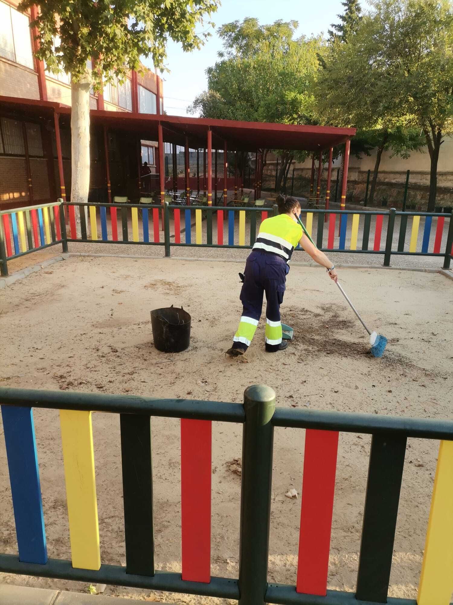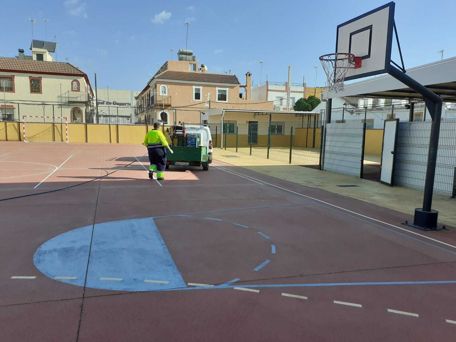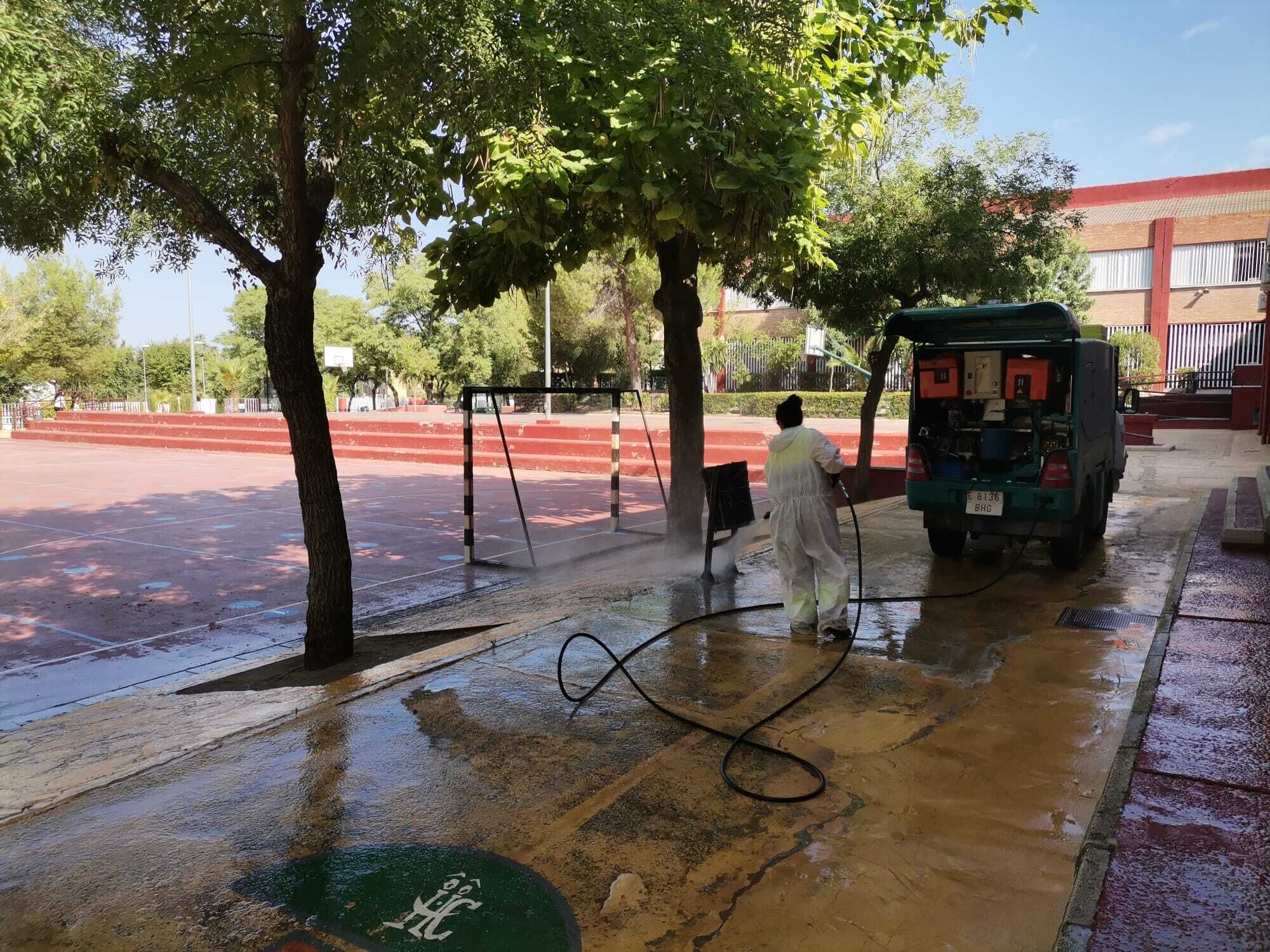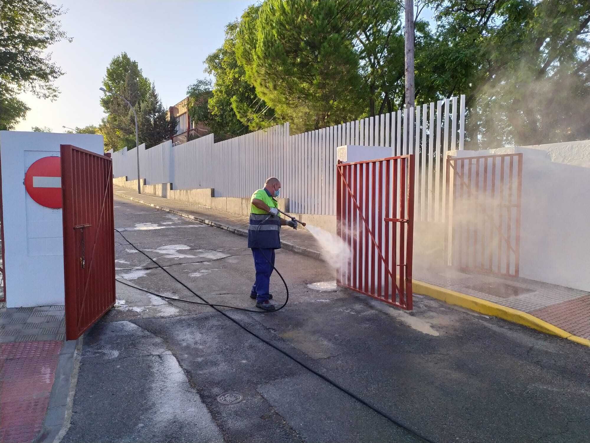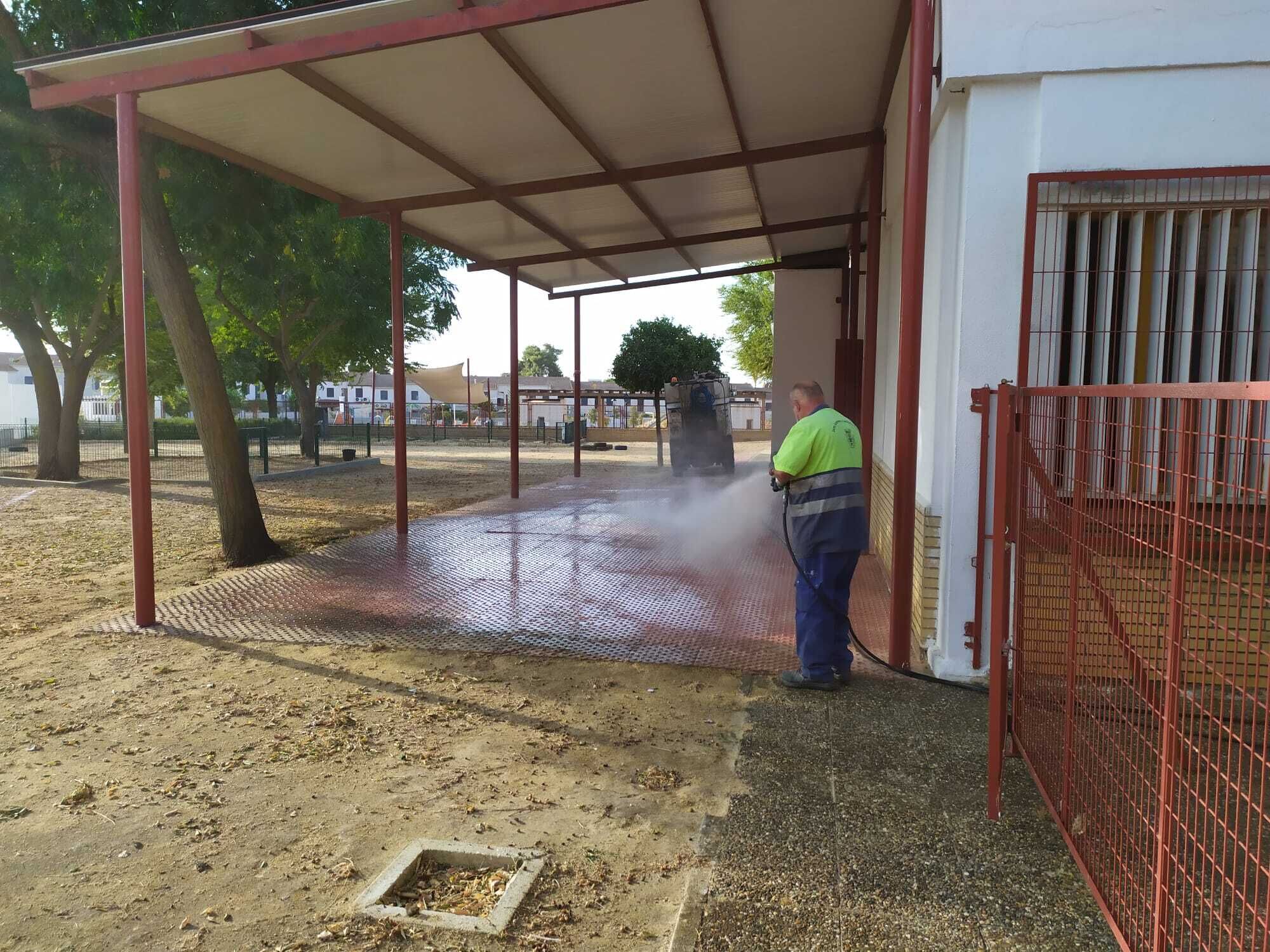 El Ayuntamiento desarrollará, como refuerzo adicional y de manera diaria, trabajos de baldeo, limpieza y desinfección de los accesos a los colegios de Castilleja de la Cuesta. De cara al inicio del curso que arranca mañana, ya hoy se han desarrollado actuaciones de desinfección en patios, zonas comunes y espacios aledaños a los centros para que todo esté listo de cara al inicio de las clases, y dentro del plan de medidas anunciado por la alcaldesa, Carmen Herrera, en agosto.