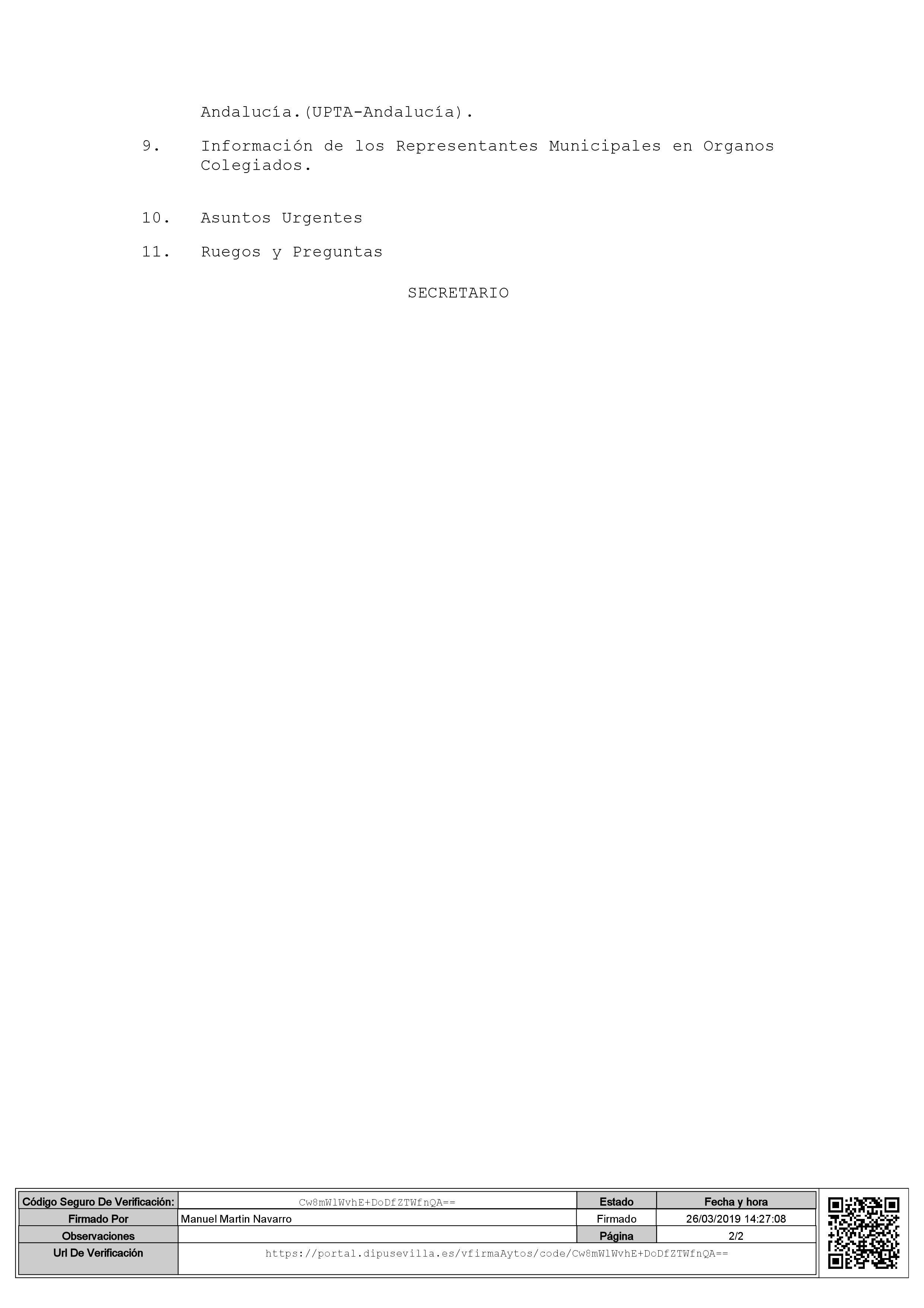 Convocatoria de Pleno Ordinario de Castilleja de la Cuesta. Viernes 29 de marzo a las 10.00 horas.
