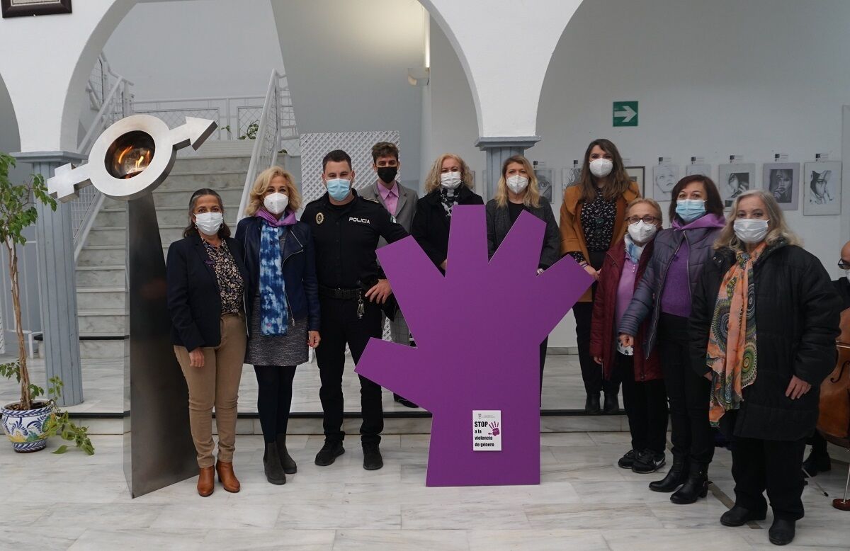 La alcaldesa, Carmen Herrera, hace un llamamiento a la sociedad para que apoyen y animen a las víctimas de esta lacra a denunciar, tras la inauguración de la muestra, junto a las asociaciones de mujeres del municipio.