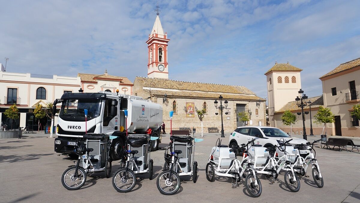 El Ayuntamiento ha incorporado al servicio de limpieza municipal 15 bicicletas eléctricas y un camión de riego y baldeo, gracias a las inversiones previstas con el remanente municipal y a los fondos procedentes del Plan Contigo de la Diputación de Sevilla. Su objetivo, “facilitar el trabajo de los operarios para que sea más efectivo y eficiente, además de reforzar la limpieza y desinfección del municipio, para que sea posible llegar a todos los rincones del pueblo”. “Mejoramos así la calidad del servicio, apostando por la sostenibilidad en la realización de estas importantes tareas”, ha asegurado la alcaldesa, Carmen Herrera, durante la presentación de estos vehículos.