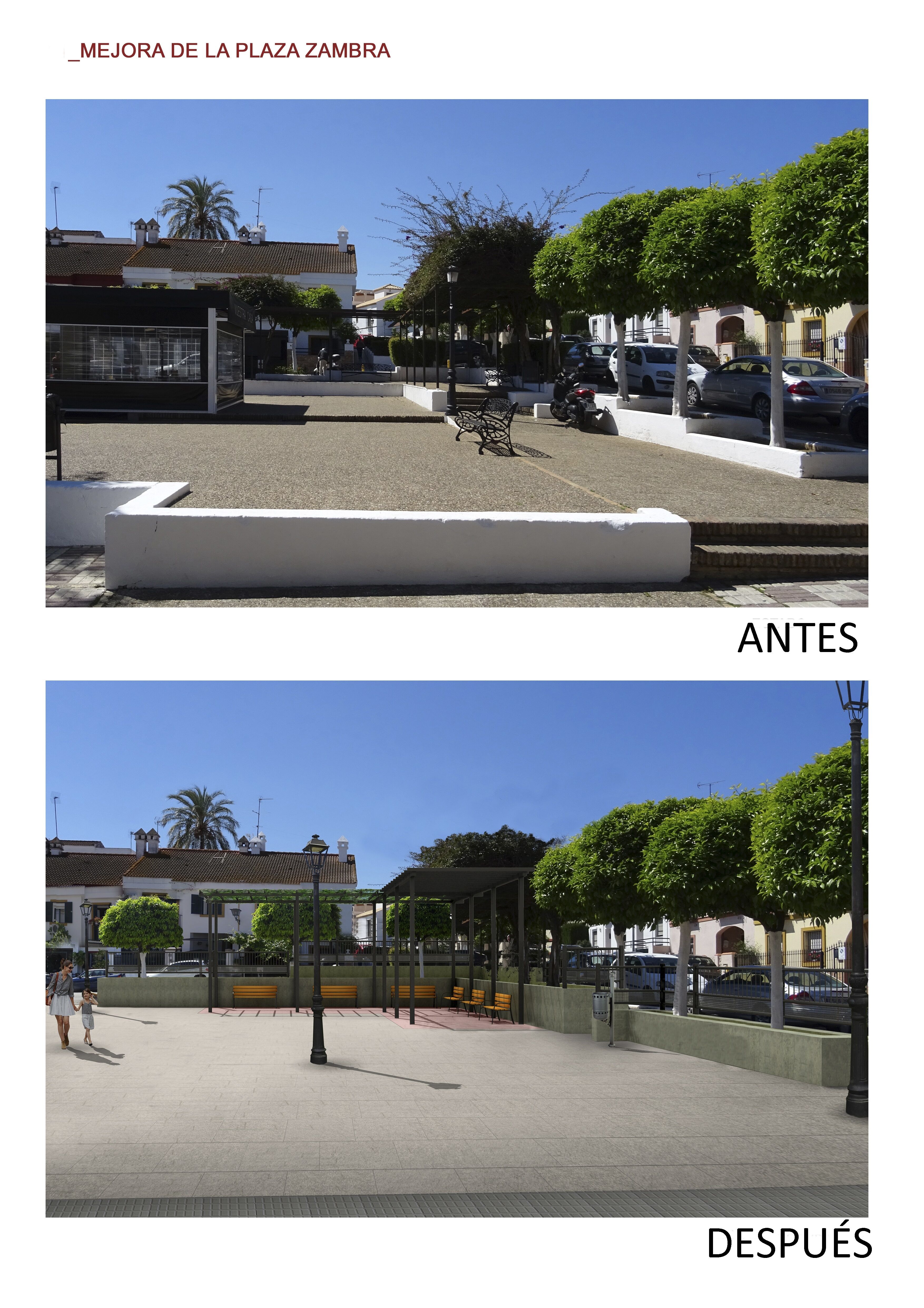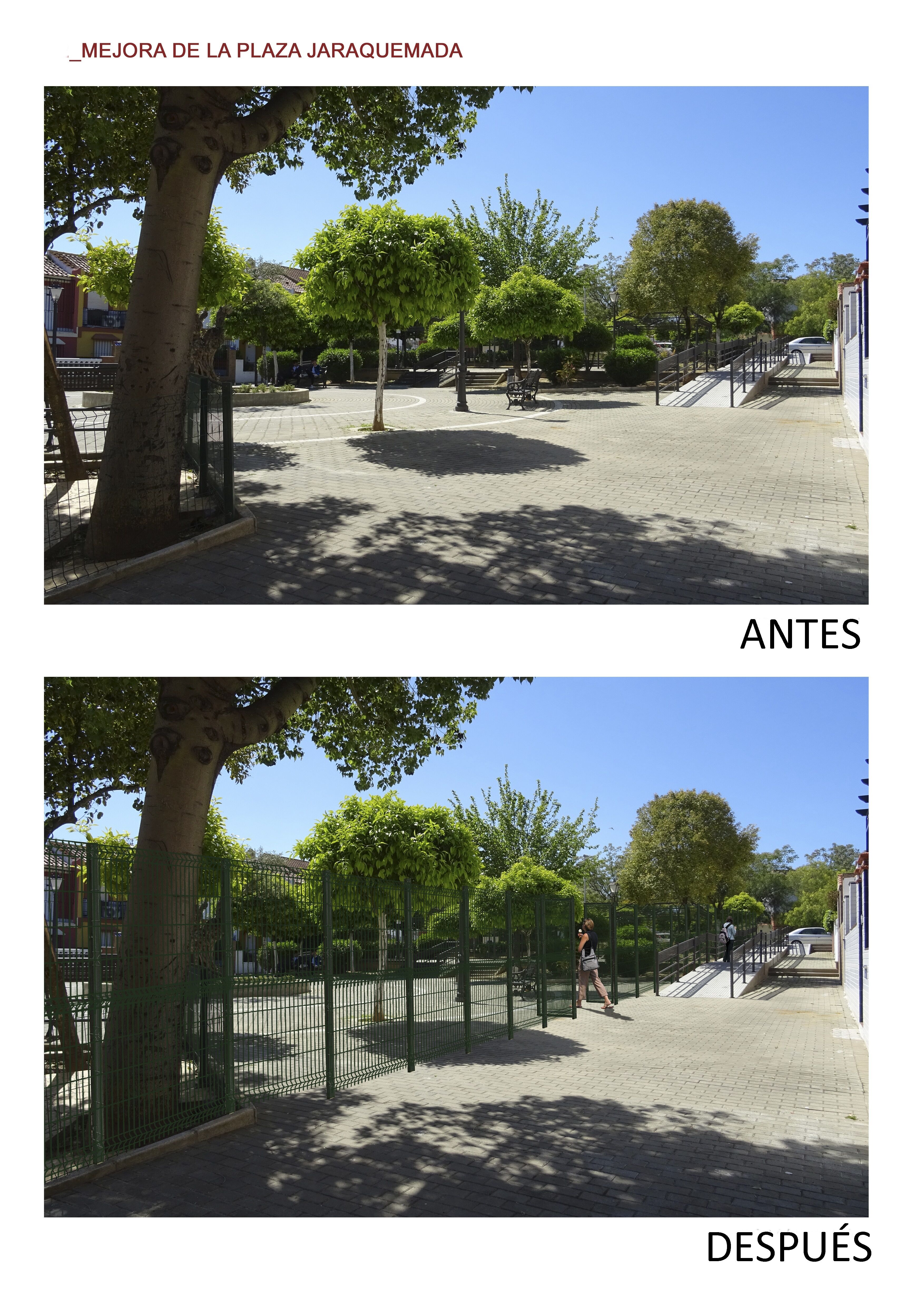 Estas obras se han desarrollado en las Plazas Alijar, Constitución, Plaza de la Viña y Juan Santana Tovar El Poeta (Zambra). Junto a ellas, también se han desarrollado actuaciones en las Plazas Albina, Carmen Cabrera, Jaraquemada, del Faro, de los Caracoles, Julio Cortázar, José Luis Borges y Parque Martín Cartaya.