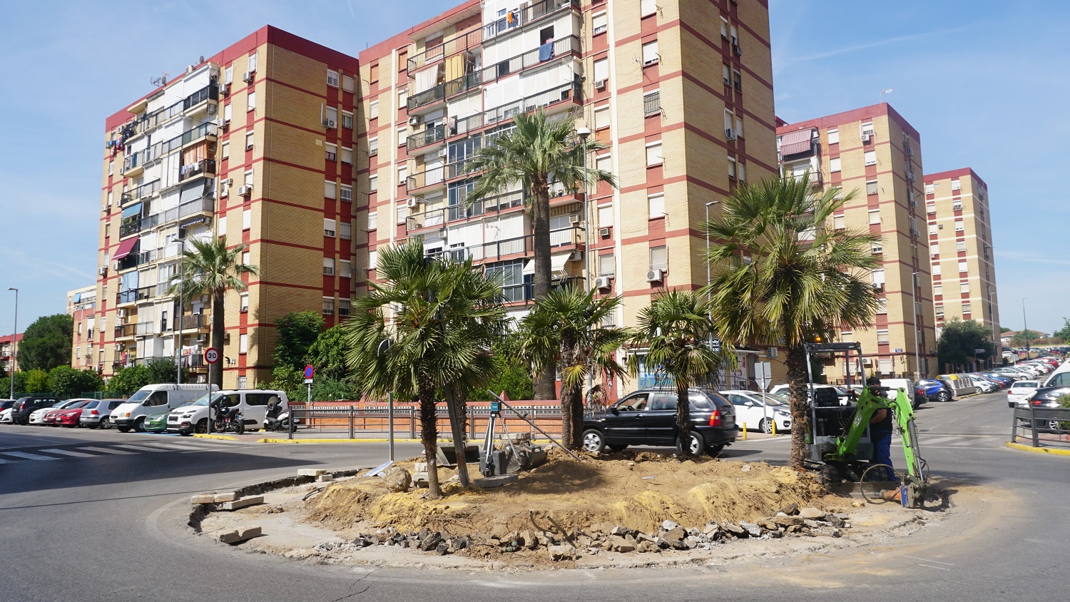 El Ayuntamiento realiza obras de remodelación de la Glorieta de la Avenida Juan Carlos I y alrededores. Se trata de una arteria principal de la Barriada de Nueva Sevilla que entronca con la Avenida de la Diputación Provincial, por lo que es una zona de gran tránsito de vehículos y de varias líneas de autobuses del Consorcio de Transportes.