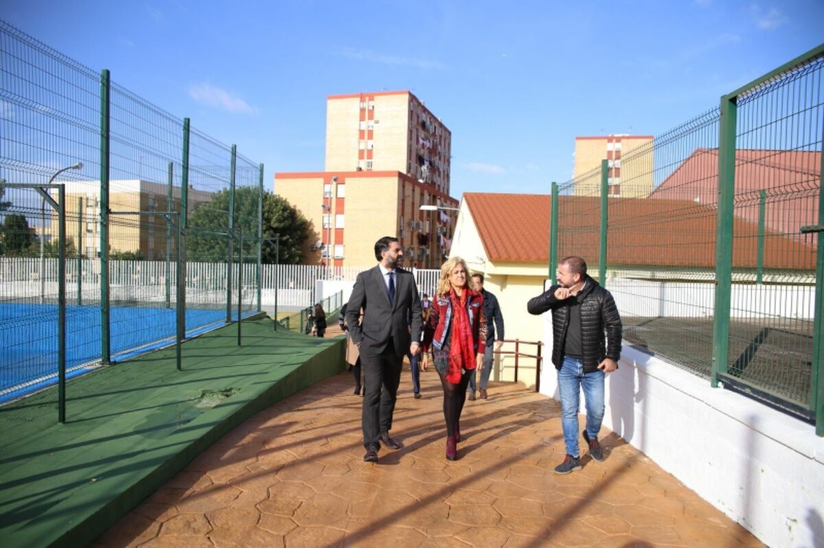 La alcaldesa, Carmen Herrera, ha recibido hoy al presidente de la Diputación de Sevilla, Fernando Rodríguez Villalobos, y al consejero de Turismo y Deporte de la Junta de Andalucía, Francisco Javier Fernández, que han visitado las instalaciones deportivas con las que cuenta el municipio.