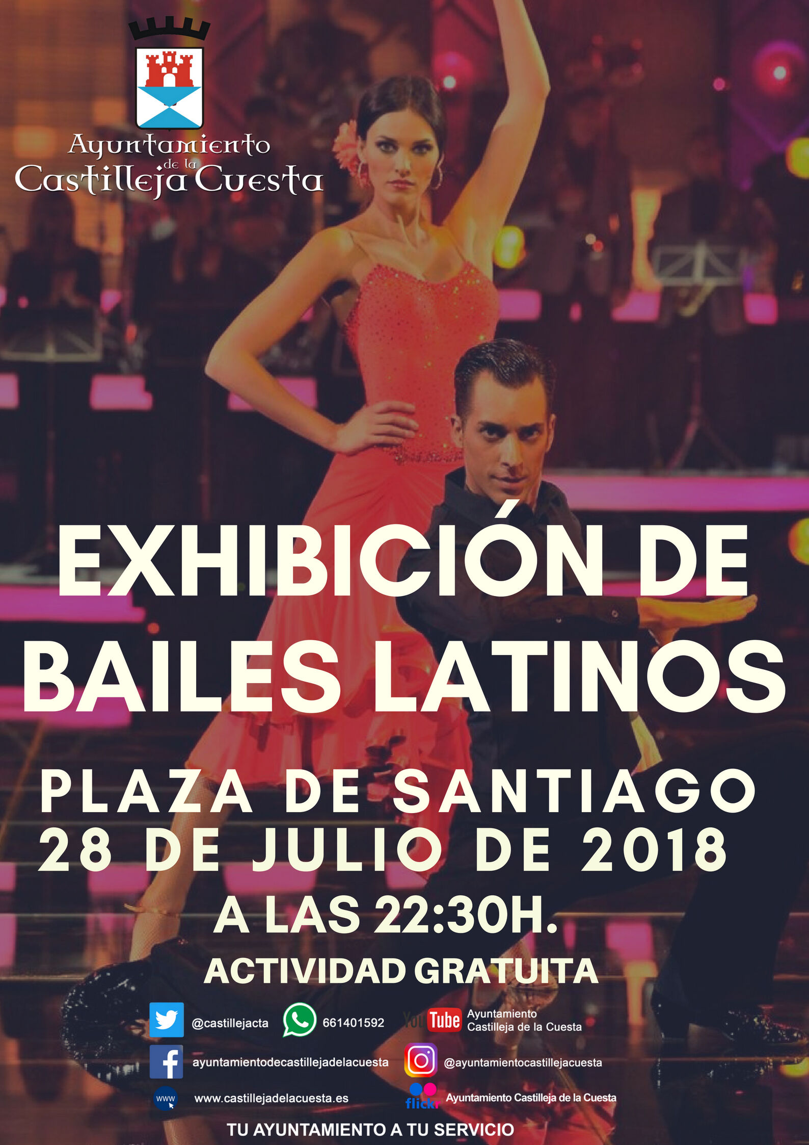 La Plaza de Santiago acoge el próximo sábado, a partir de las 22.30 horas, una exhibición de bailes latinos, organizada por Ayuntamiento de Castilleja de la Cuesta, en el marco del Programa de Fomento y Cooperación Cultural de la Diputación de Sevilla.