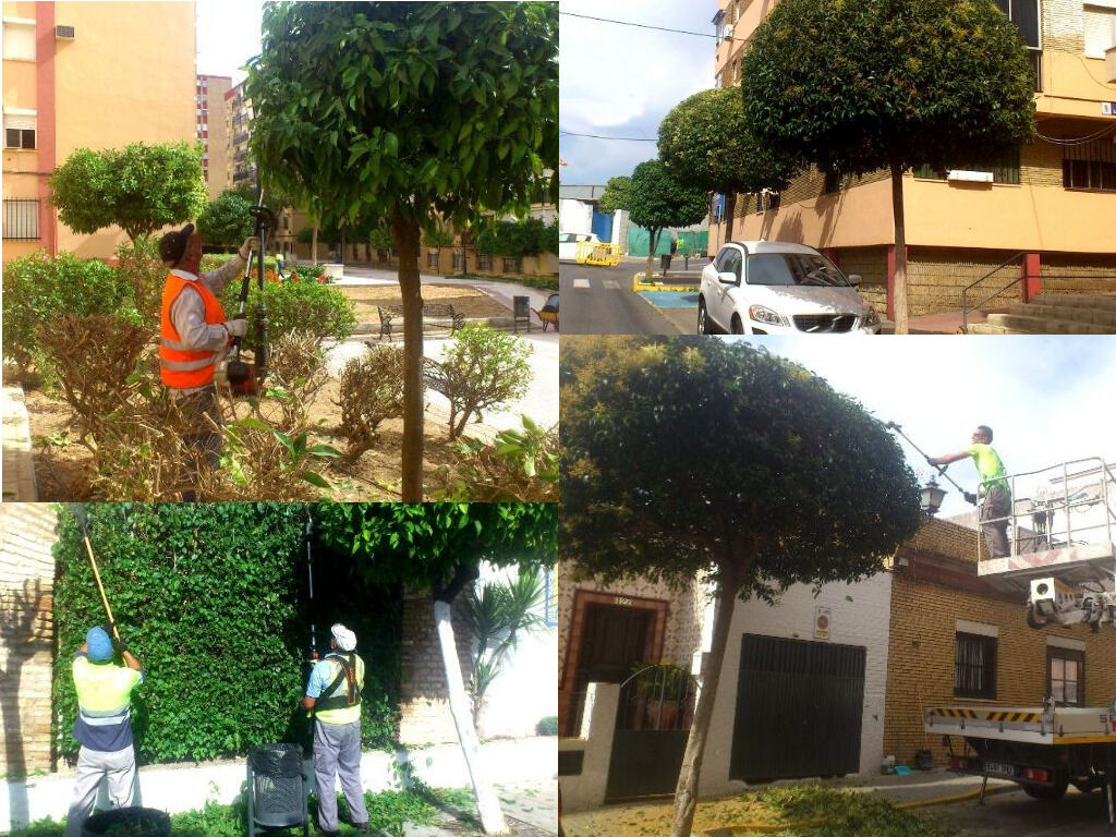 Se están realizando trabajos de poda en la Calle Diego de los Reyes, en la calle Jesús del Gran Poder y en el Pasaje de Triana.