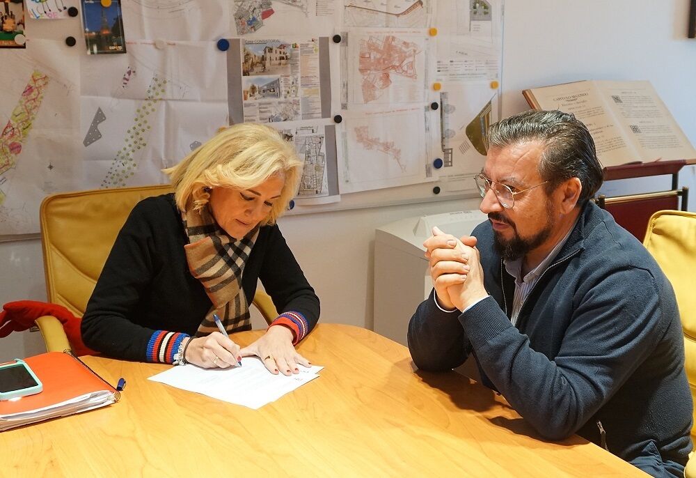 La Asociación Cultural ‘Castilleja con Triana’ ha donado al Ayuntamiento el monumento al Simpecado de la Hermandad del Rocío de Triana. La alcaldesa, Carmen Herrera, y el presidente de la entidad, Francisco José Álvarez Chaves, han formalizado esta donación con la firma del acta de recepción, tras el acuerdo de la Junta de Gobierno.