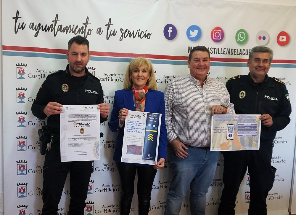 La alcaldesa, Carmen Herrera, ha presentado junto al delegado de Seguridad Ciudadana Francisco Cordón y el jefe de la Policía Local, Miguel Ángel Hidalgo, el Plan de Seguridad y Actuación ante Emergencias, para garantizar la seguridad de vecinos y vecinas durante esta Semana Santa. Este plan se activa mañana con el inicio de las procesiones en Castilleja de la Cuesta.