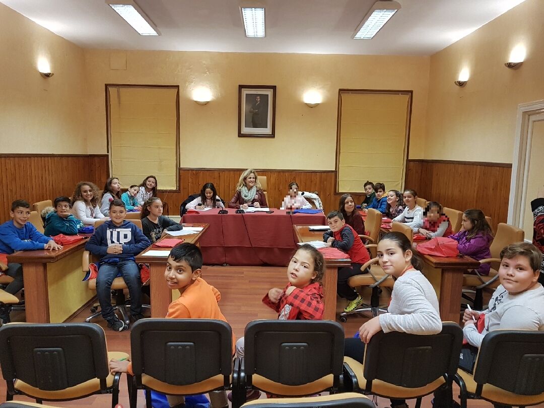 El salón de Plenos del Ayuntamiento de Castilleja de la Cuesta ha acogido en la mañana de hoy a los alumnos y alumnas de 5º del CEIP Gloria Fuertes de la localidad, que han realizado un trabajo sobre el “eco-barrio” y como ser más sostenibles, y han presentado sus iniciativas a Carmen Herrera.