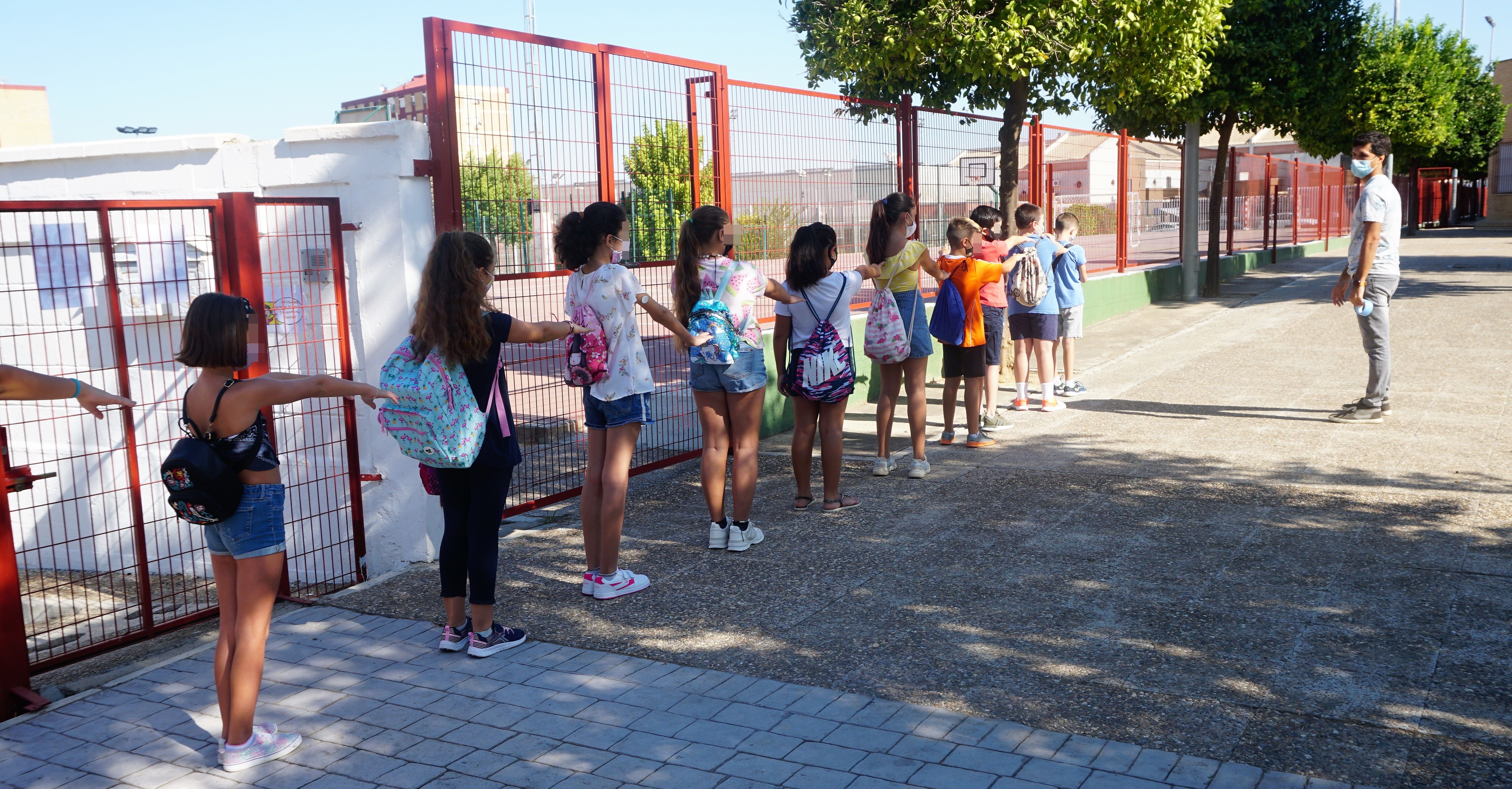 Los colegios de Infantil y Primaria de Castilleja de la Cuesta han abierto hoy sus puertas para dar comienzo a un nuevo curso escolar, que este año estará marcado por las medidas impulsadas para la prevención de la Covid19. Unos 1.400 niños y niñas se incorporan desde hoy, y manera escalonada a las aulas, cumpliendo los protocolos de seguridad y de prevención que dictan las autoridades sanitarias. El Ayuntamiento de Castilleja de la Cuesta lleva trabajando de manera intensa desde el inicio del verano en el plan de limpieza y desinfección de los centros, así como en actuaciones de mantenimiento y de adaptación de estas medidas de seguridad, para que todo estuviera listo de cada al inicio de curso que arranca hoy.