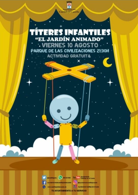 El Ayuntamiento de Castilleja de la Cuesta organizó, el pasado viernes 11 de agosto, una auténtica noche de títeres, para niños y niñas, en el Parque de las Civilizaciones, con la representación de 'El jardín animado'. Casi 200 personas disfrutaron de la magia de esta obra infantil.