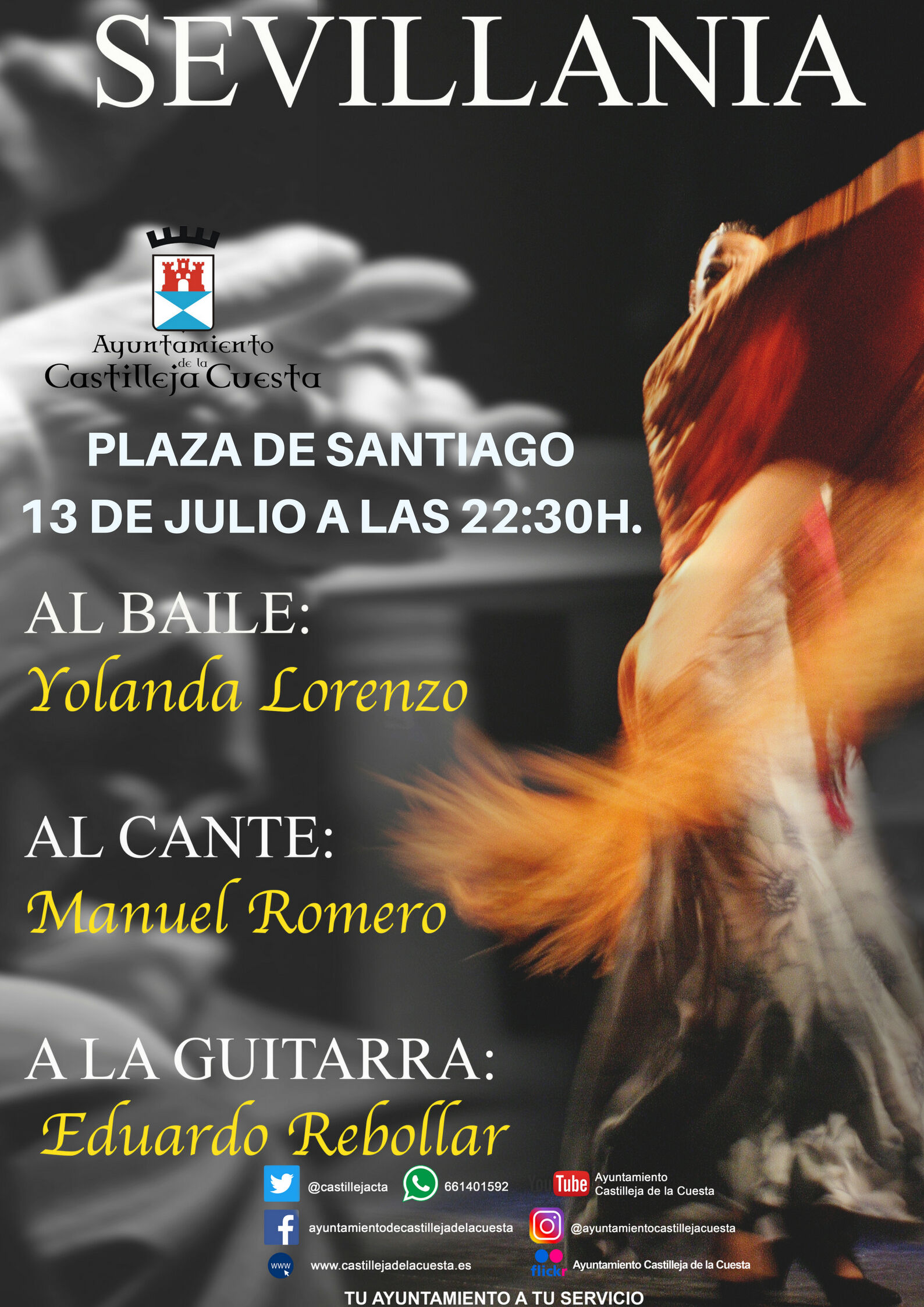 Más de un centenar de personas asistieron, el pasado viernes 13 de julio, al espectáculo flamenco Sevillanía, organizado por Ayuntamiento de Castilleja de la Cuesta, en el marco del Programa de Fomento y Cooperación Cultural de la Diputación de Sevilla.