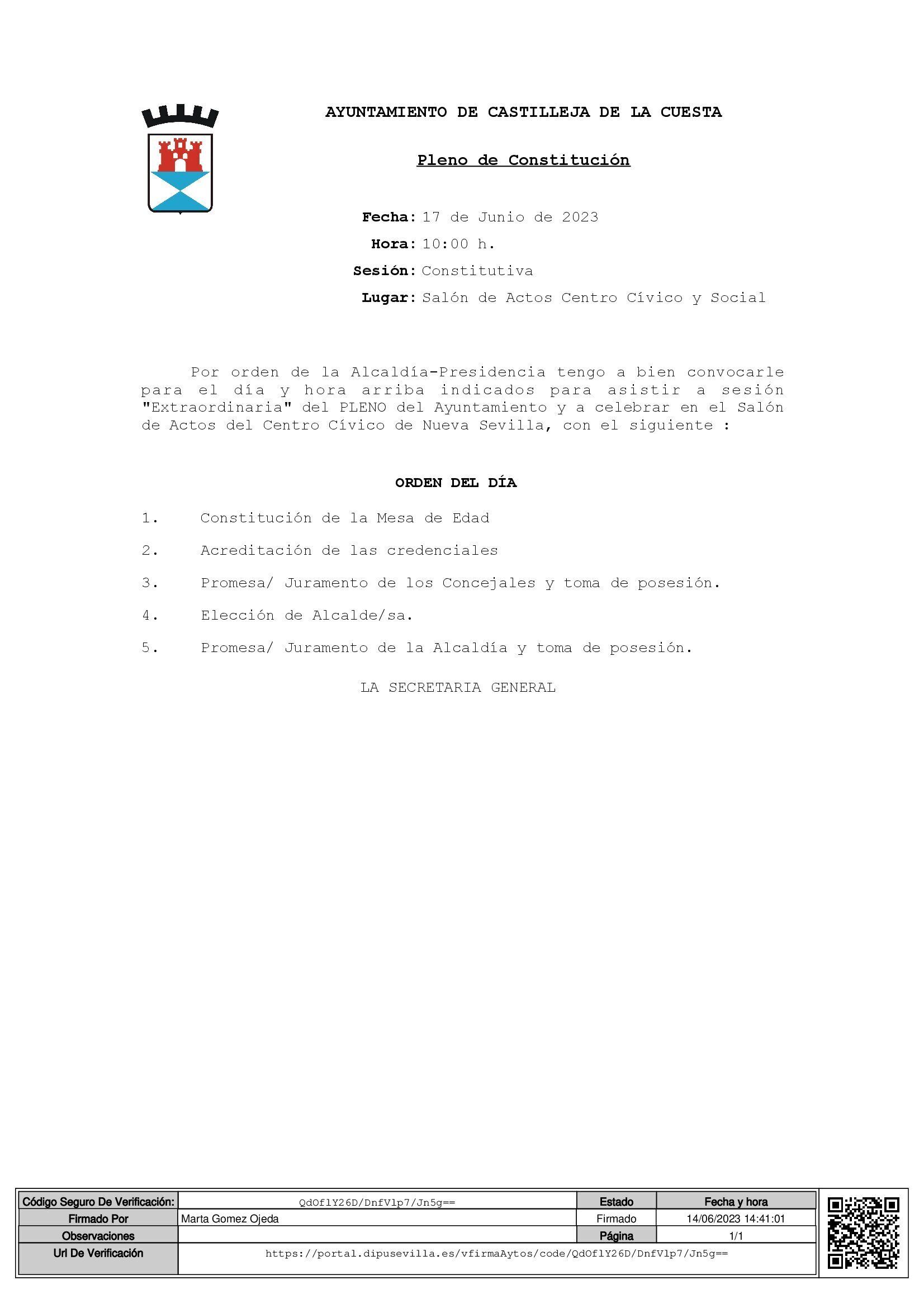 Vecinos y vecinas podrán ver el pleno de manera on line a través del canal de Youtube del Ayuntamiento: https://www.youtube.com/@ayuntamientodecastillejade3866