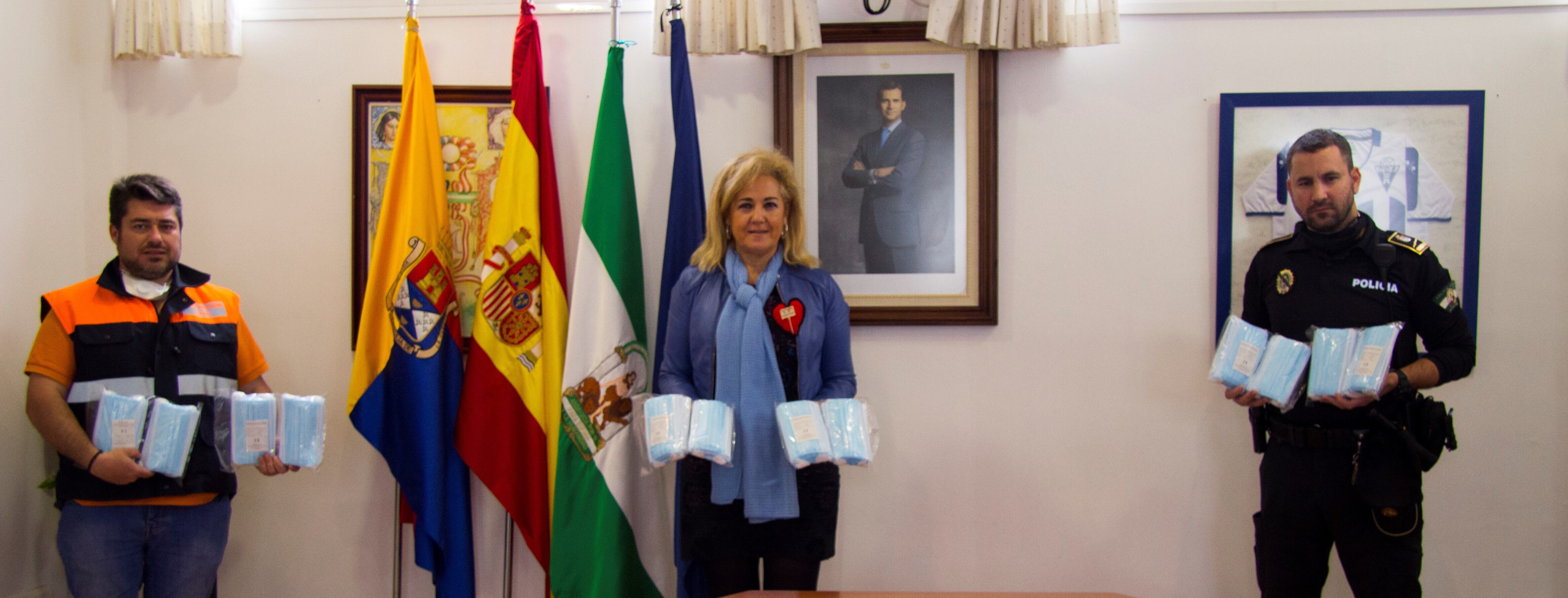La alcaldesa, Carmen Herrera, se ha reunido hoy con el jefe de la Policía Local, Miguel Ángel Hidalgo, y con el coordinador jefe de Protección Civil, Faustino Marín, para coordinar este reparto de mascarillas, que ha entregado el Gobierno central al municipio.