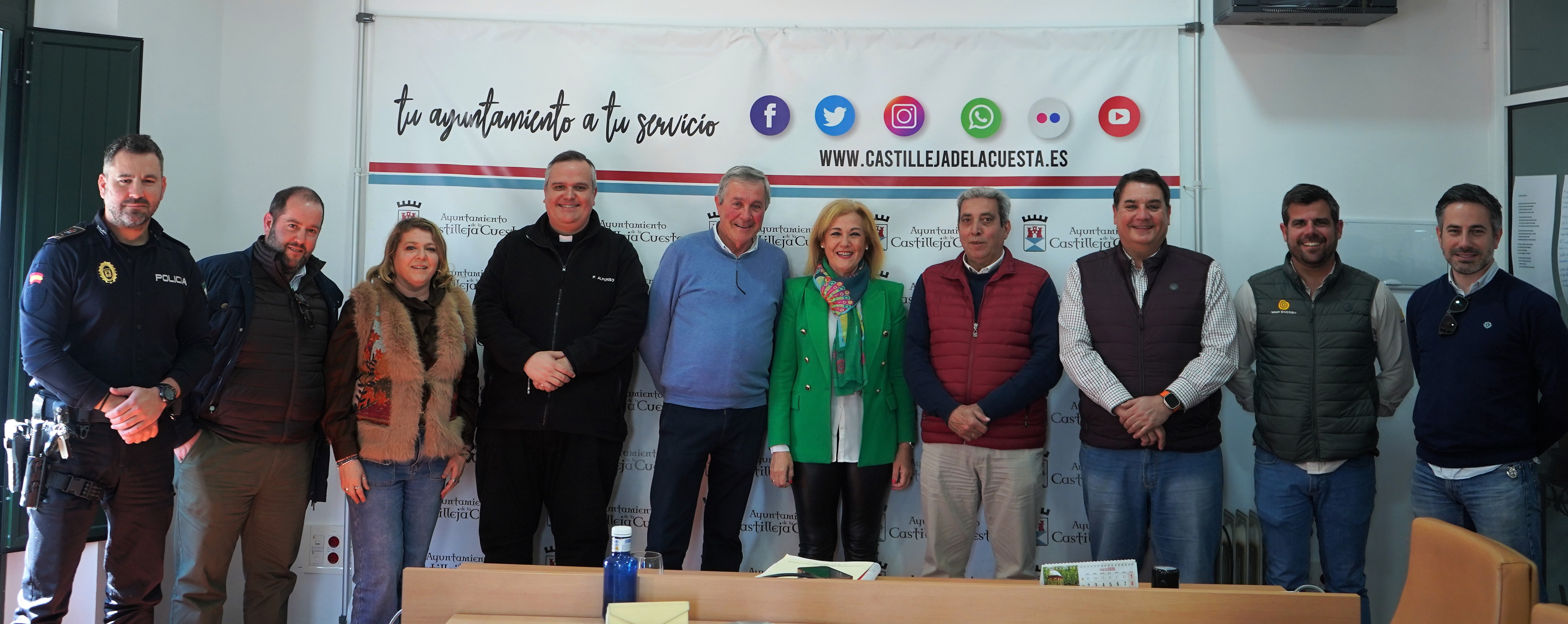 A esta reunión asistieron los delegados Francisco Cordón y Ángeles Rodríguez; el jefe de la Policía Local de Castilleja de la Cuesta, Miguel Ángel Hidalgo; el hermano mayor de la Hermandad de Santiago Apóstol, Leopoldo Rodríguez; el hermano mayor de la Hermandad de la Inmaculada Concepción, Narciso Rodríguez, miembros de las ambas Juntas de Gobierno y el párroco Alfonso José Filiberto del Castillo.