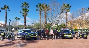 La alcaldesa, Carmen Herrera, presenta estos coches junto al jefe de la Policía Local, Miguel Ángel Hidalgo y la delegada de Seguridad, Ángela de la Rosa.