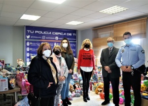 Una edición más, la alcaldesa, Carmen Herrera, acompañada del jefe de la Policía Local, entrega a los representantes de Cáritas del municipio las donaciones de vecinos y vecinas.