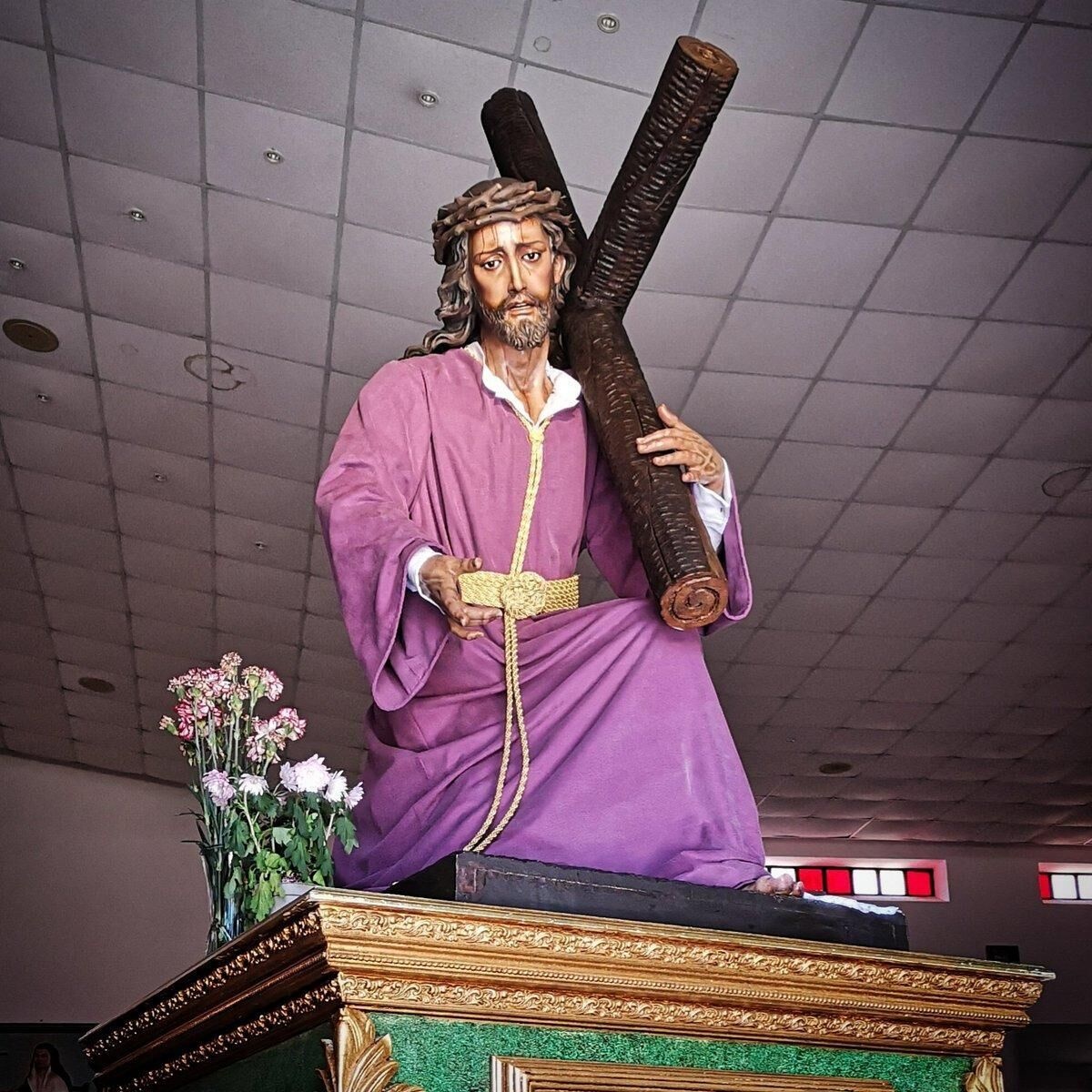 De estilo contemporáneo funcional, en el altar mayor hay una pintura del rostro de Jesús en la Sábana Santa; a un lado está el Sagrario y al otro lado una imagen de la Virgen del Santo Hogar, tallada en Italia y donada por Pedro León. Destacan un cuadro donado por Juan Pablo II, una talla de San Miguel Arcángel y la otra de la Virgen de la Misericordia del siglo XVII. En febrero de 2017 se incorporó la imagen del Santísimo Cristo de la Salud, obra del imaginero Esteban Sánchez Rosado. Se encuentra situada en la Avenida de Marina s/n, en la barriada de Nueva Sevilla.